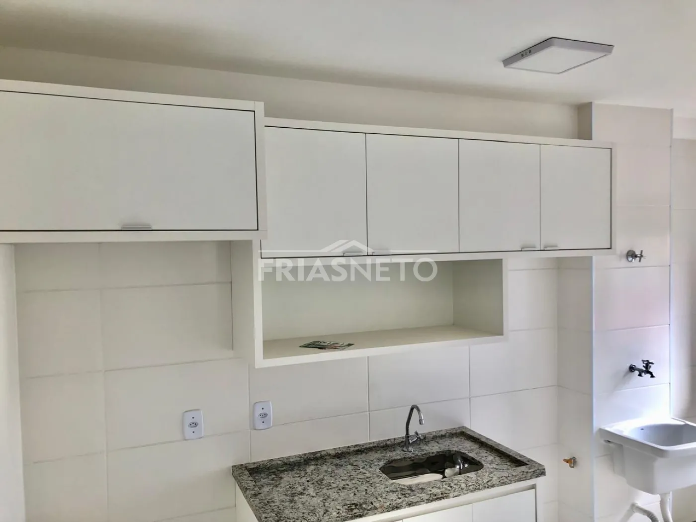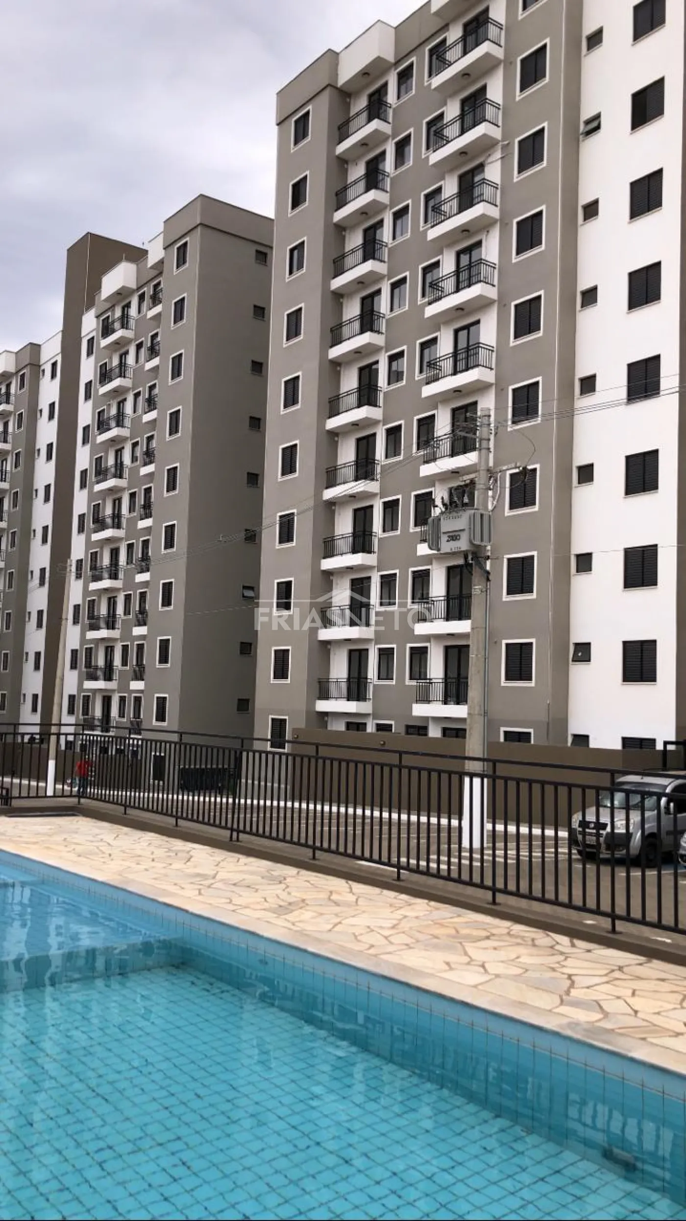 Apartamento primeira locação em Piracicaba no bairro Água Branca com 2 dormitórios com armários, banheiro com gabinete e box de blindex, cozinha completa de armários, área de serviço, sala com varanda. Condomínio com piscina, academia, salão de festas, playgraund, espaço pet, espaço gourmet, bicicletário, 2 elevadores por torre