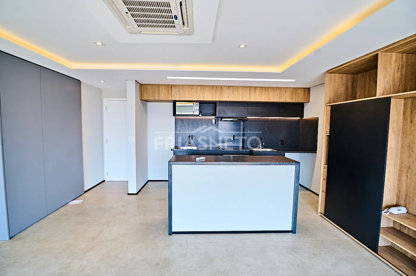 - Equipado com ar-condicionado cassete, integrando sala e dormitório.