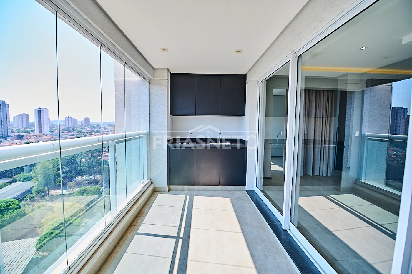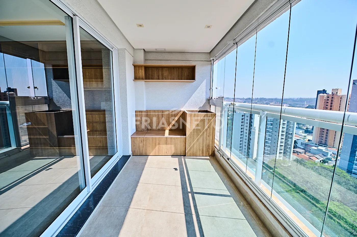 - Sala integrada a ampla sacada com pia e churrasqueira elétrica,