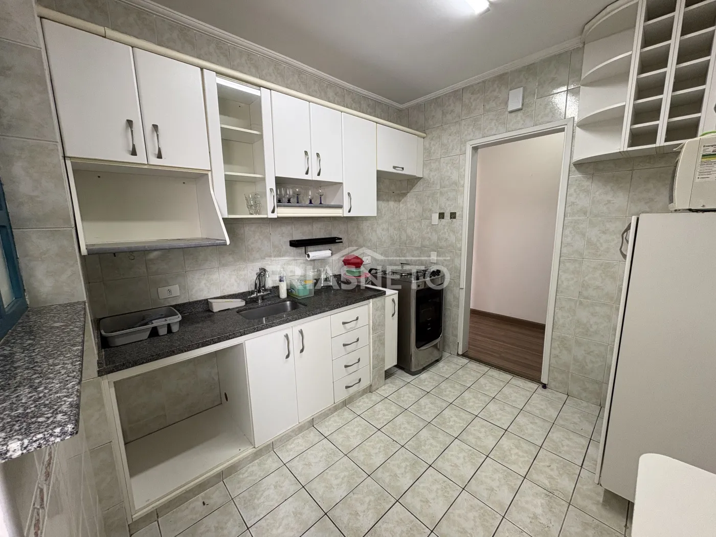 -Cozinha repleta de armários com lavanderia integrada;