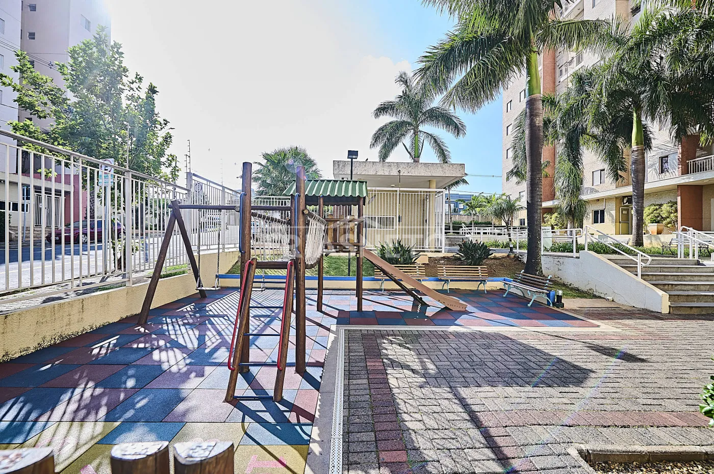 O condomínio conta com portaria 24 horas, piscina, salão de festas, sala fitness, brinquedoteca, bicicletário, espaço gourmet, playground e quadra.