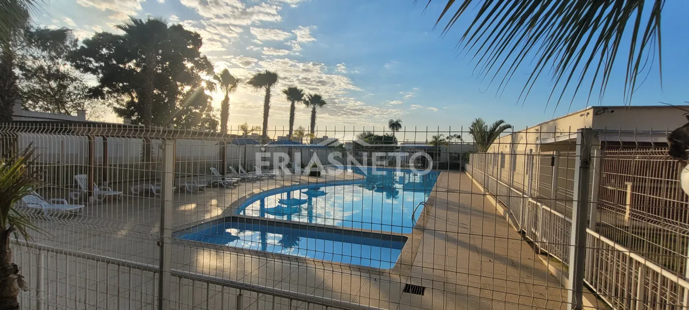 O condomínio possui portaria 24 horas, piscina, salão de festas e churrasqueira.
