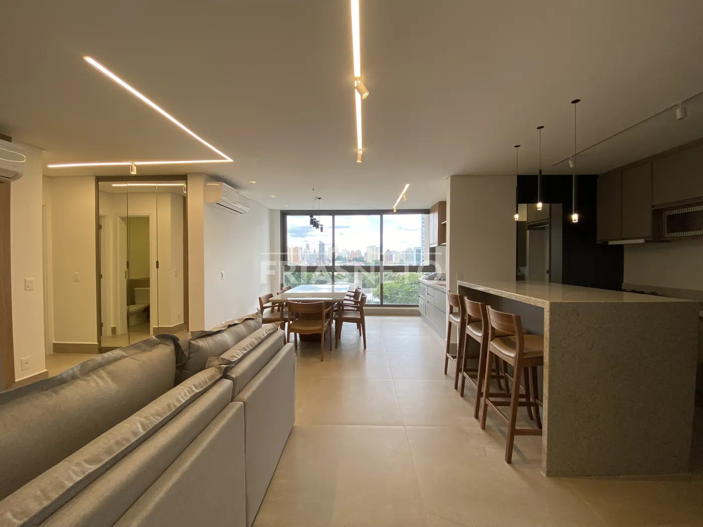 São 3 suítes espaçosas, sendo duas com armários planejados e uma suíte com closet e varanda privativa. A área social conta com amplo living para dois ambientes, varanda gourmet fechada em blindex e com churrasqueira, lavabo, e cozinha planejada integrada à área de serviço. Todos os ambientes com aparelhos de ar condicionado.