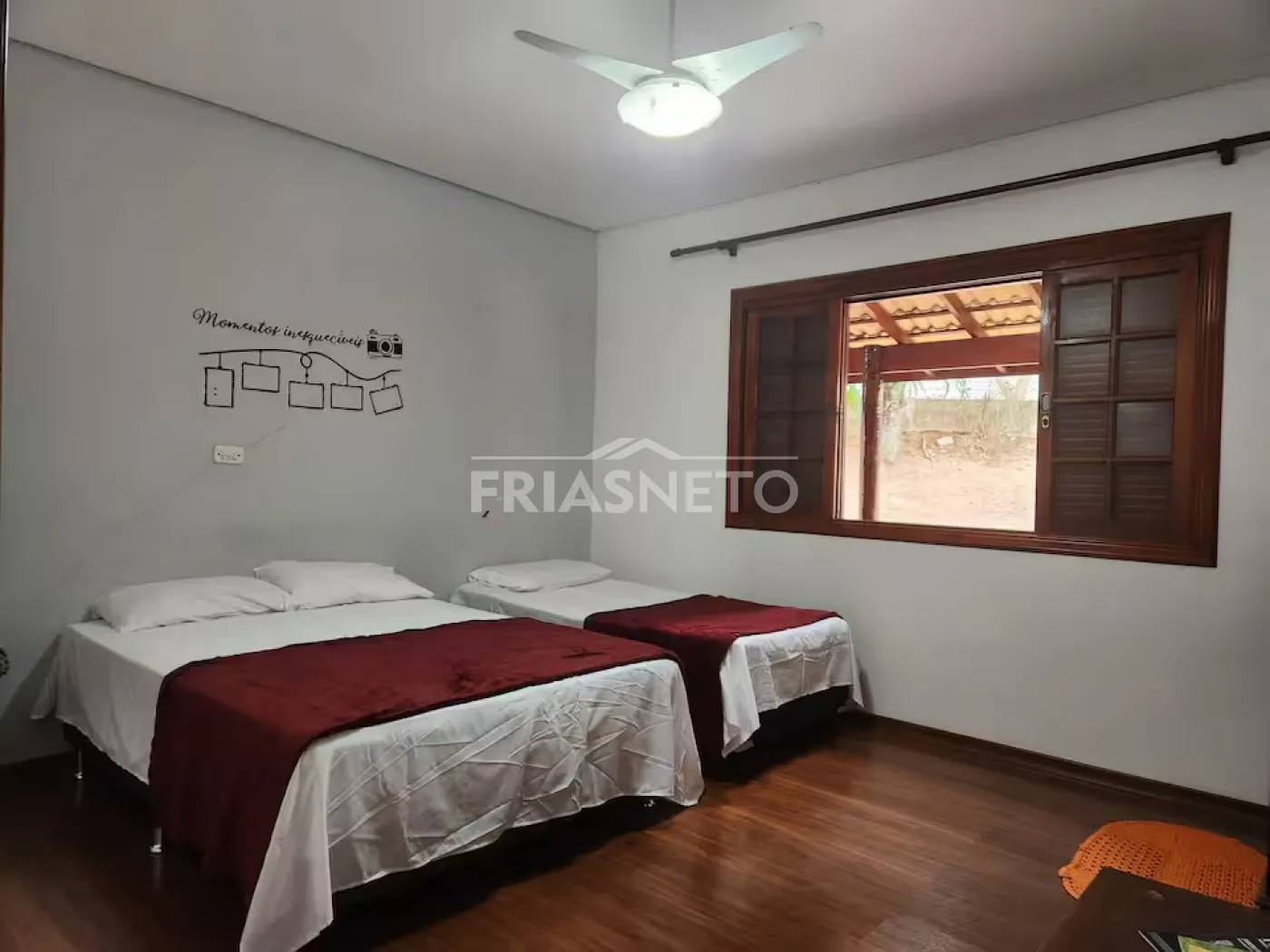 Possui 4 Quartos amplos, sendo 1 quarto suíte. 5 camas de casal, 3 camas de solteiro, 4 banheiros,