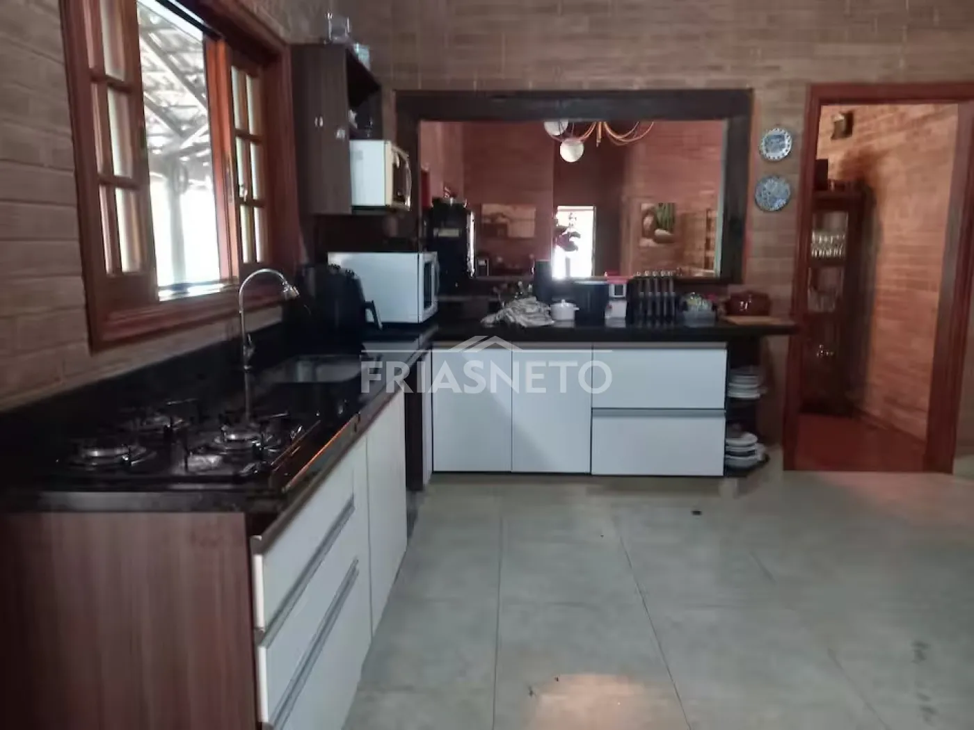 Cozinha equipada com fogão a gás, micro-ondas, forno elétrico, airfryer, geladeira grande
