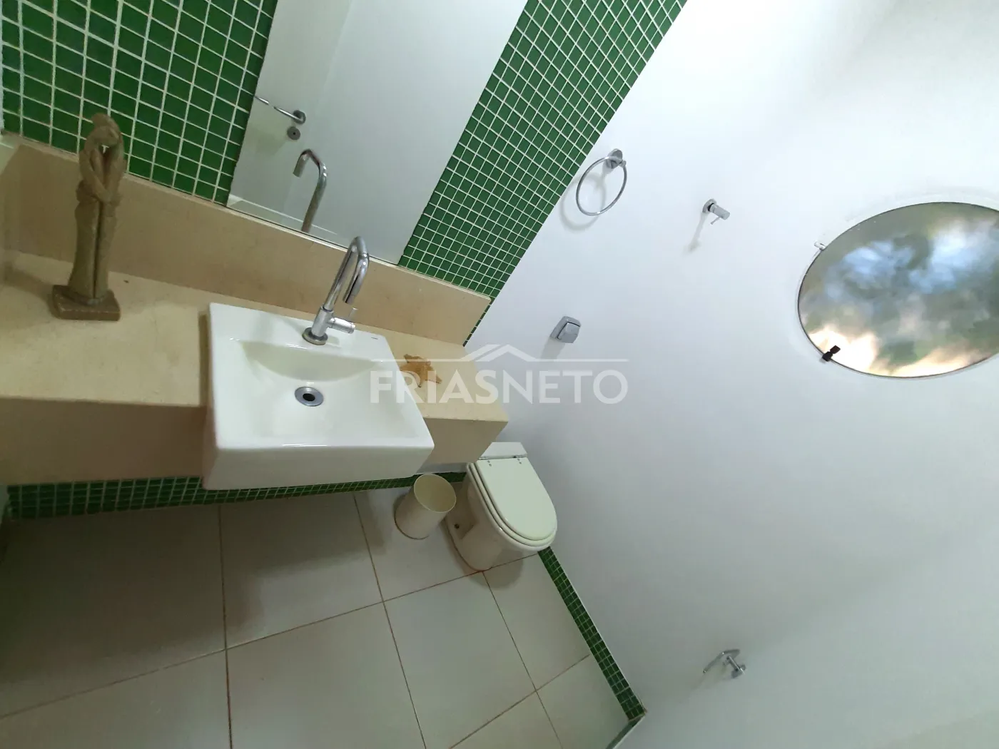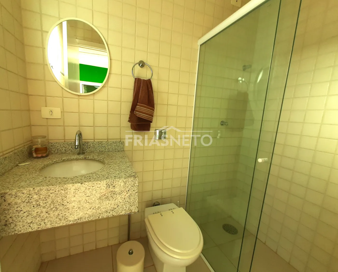 - Lavabo com pia em mármore e espelho;