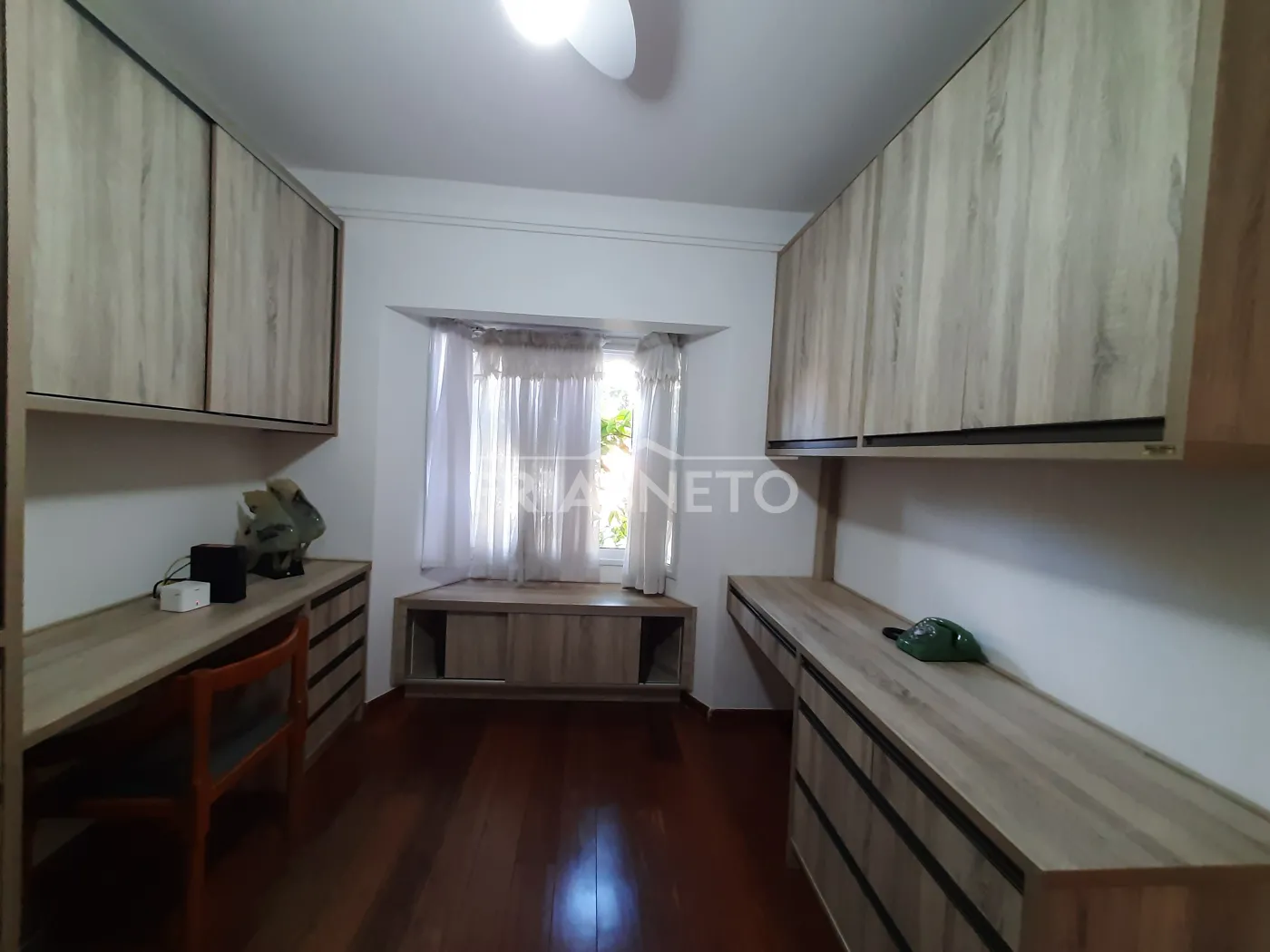 - Escritório com armários embutidos e ventilador de teto;