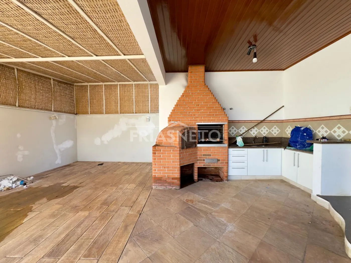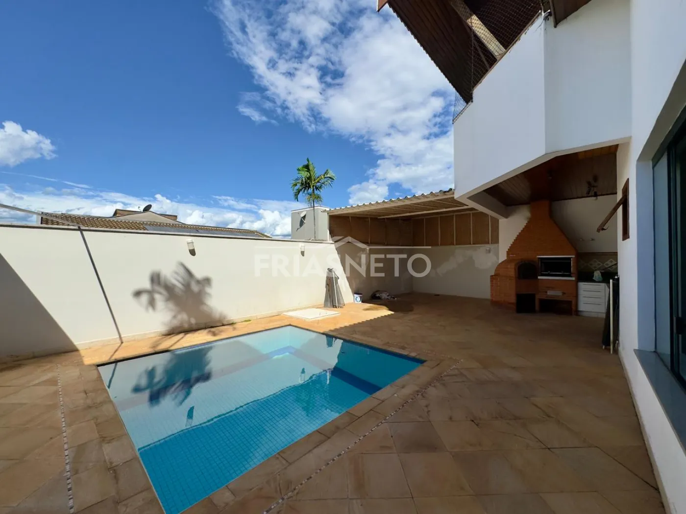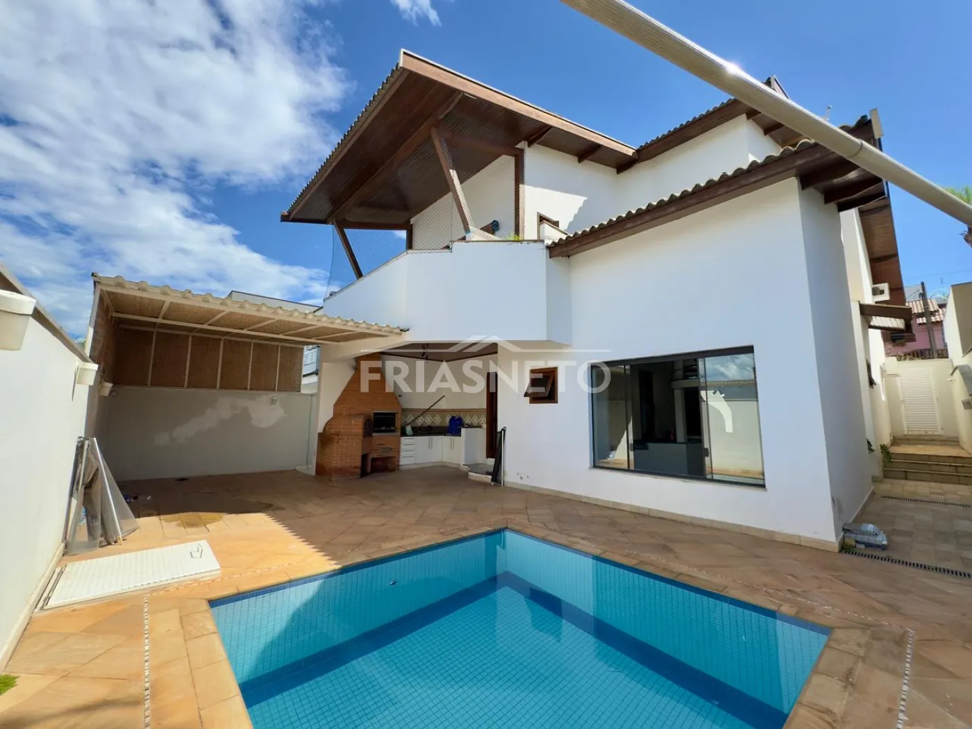 Casa ampla no Terras de Piracicaba III com 3 dormitórios, todos avarandados e com armários, uma suíte, cozinha com despensa, sala 2 ambientes, área gourmet com churrasqueira e piscina.