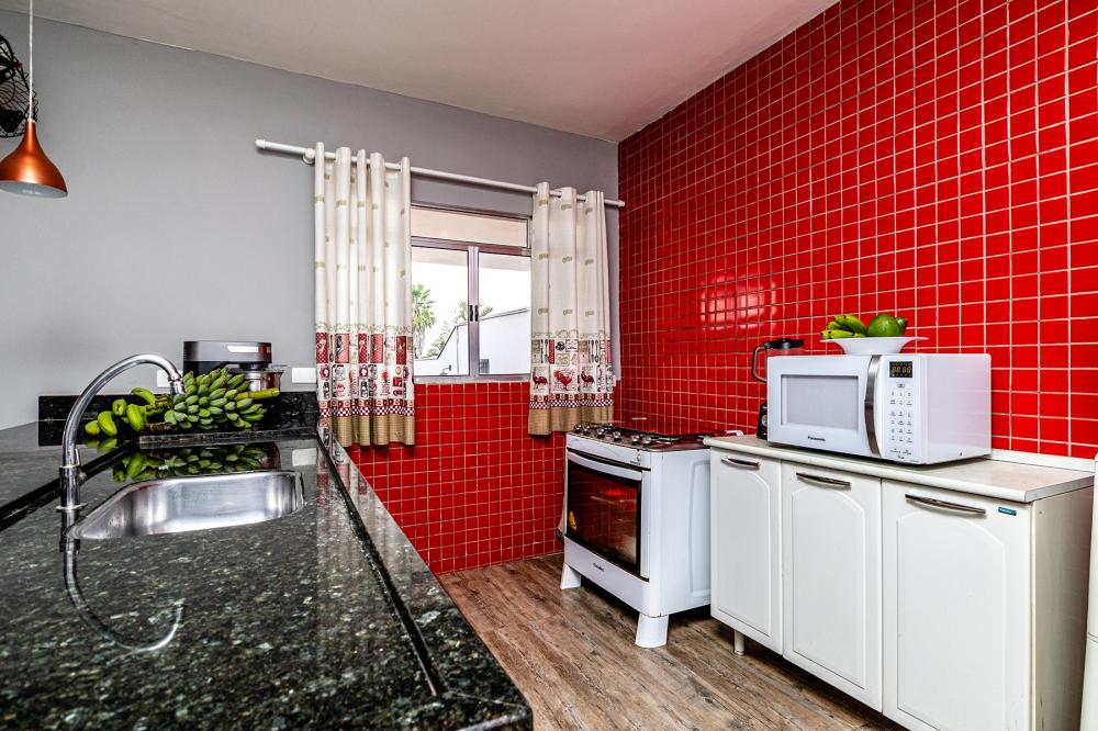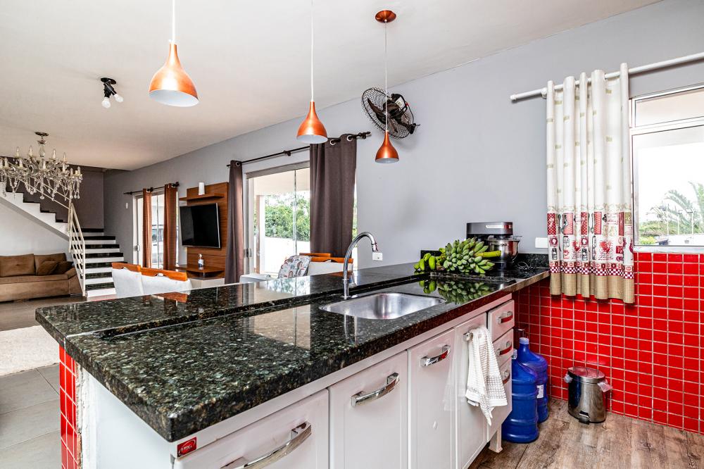Casa principal com 3 dormitórios, sendo 02 suítes, banheiro social, cozinha integrada com sala.