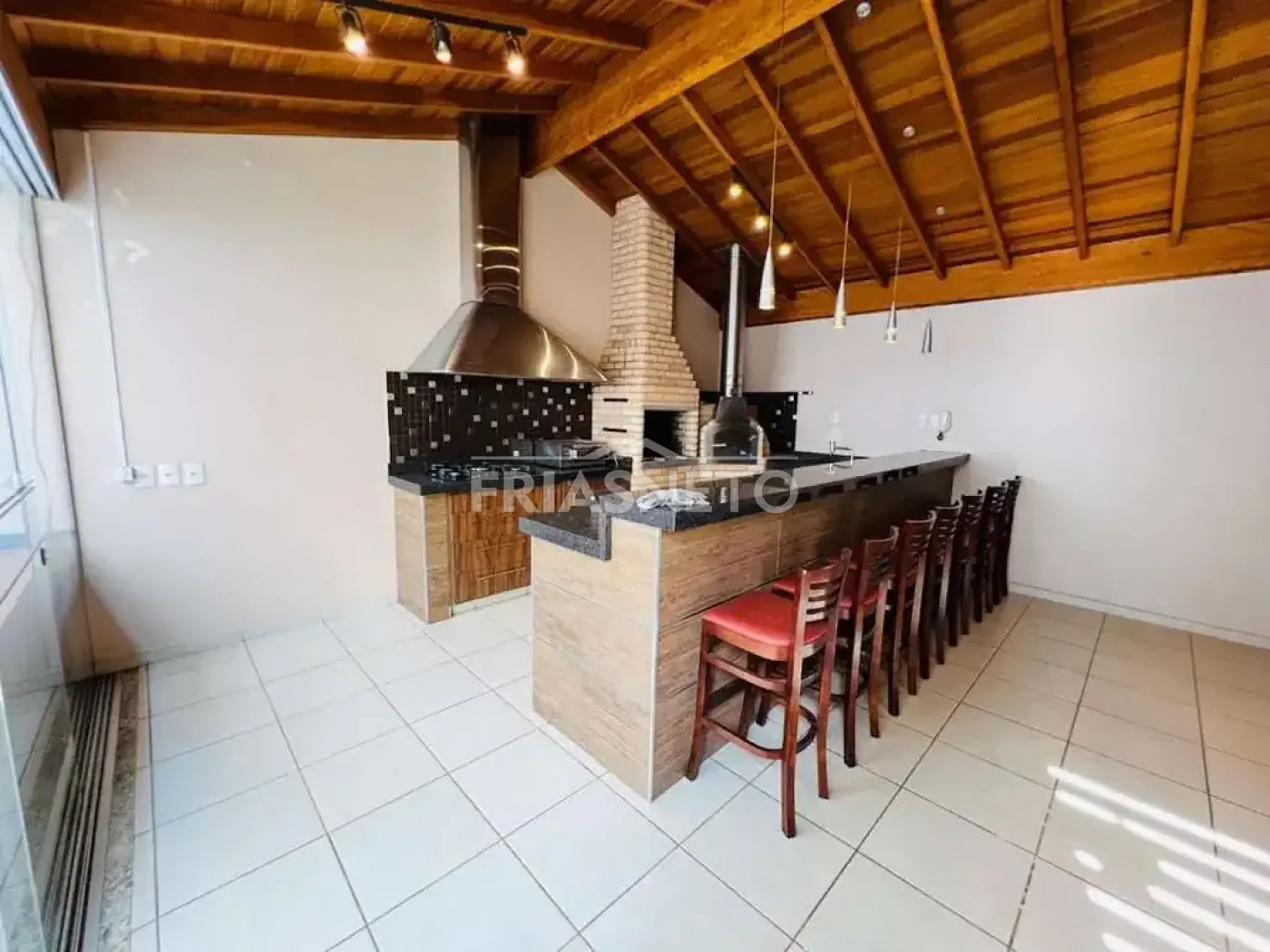 Casa no bairro Alto com ampla sala, sala de jantar, 3 dormitórios com ar condicionado, sendo 2 suítes com armários embutidos, banheiro social com blindex e hidromassagem, cozinha planejada , área de serviço coberta com banheiro. Cozinha externa, suíte externa com hidromassagem. 3 vagas cobertas e 2 vagas descobertas.