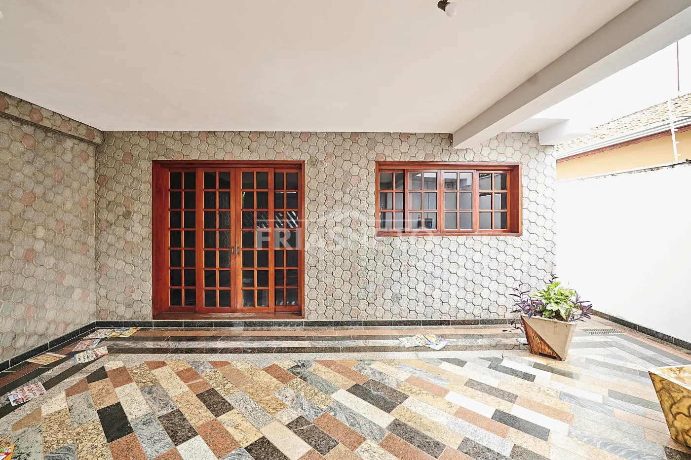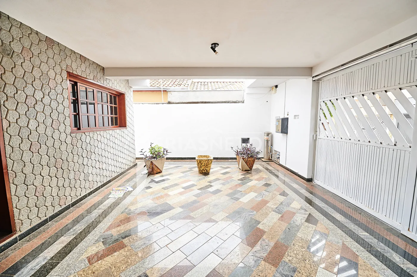 A casa dispõe de sistema de aquecimento a gás e duas vagas de garagem com portão eletrônico.