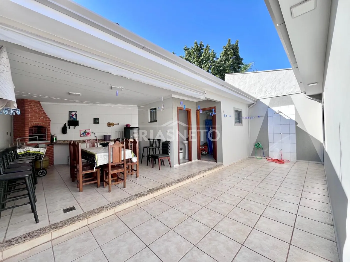 Quintal espaçoso com churrasqueira, banheiro externo e quarto de despejo