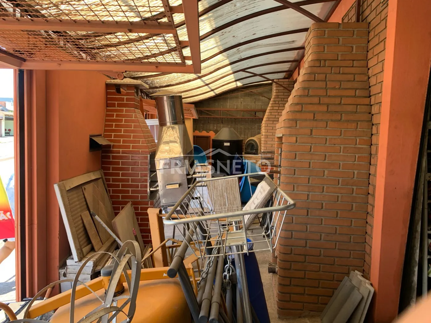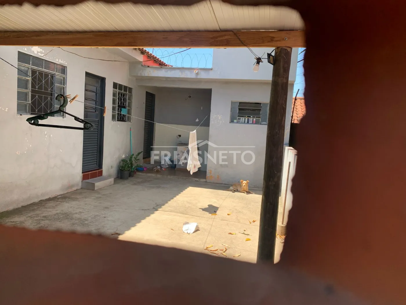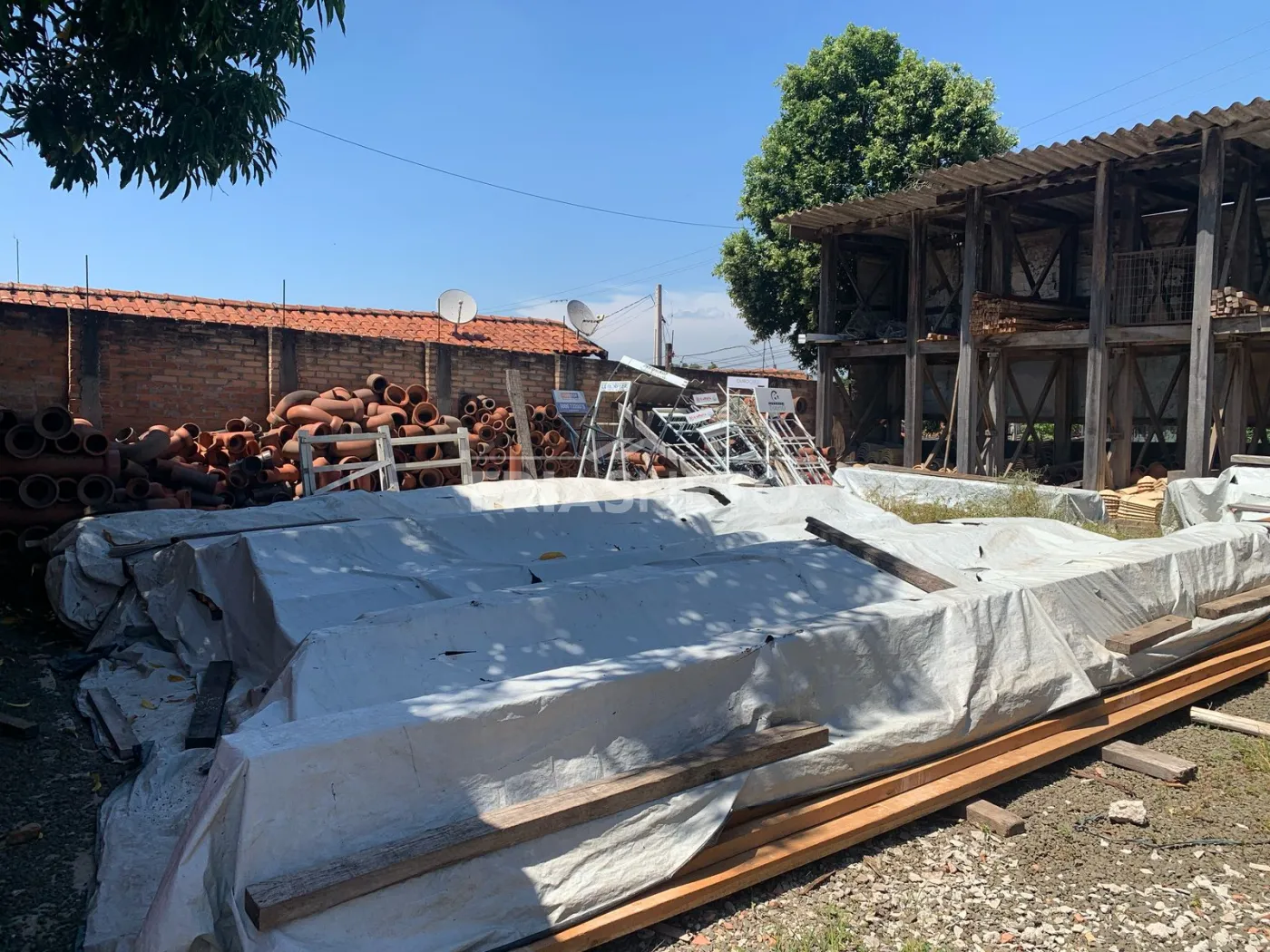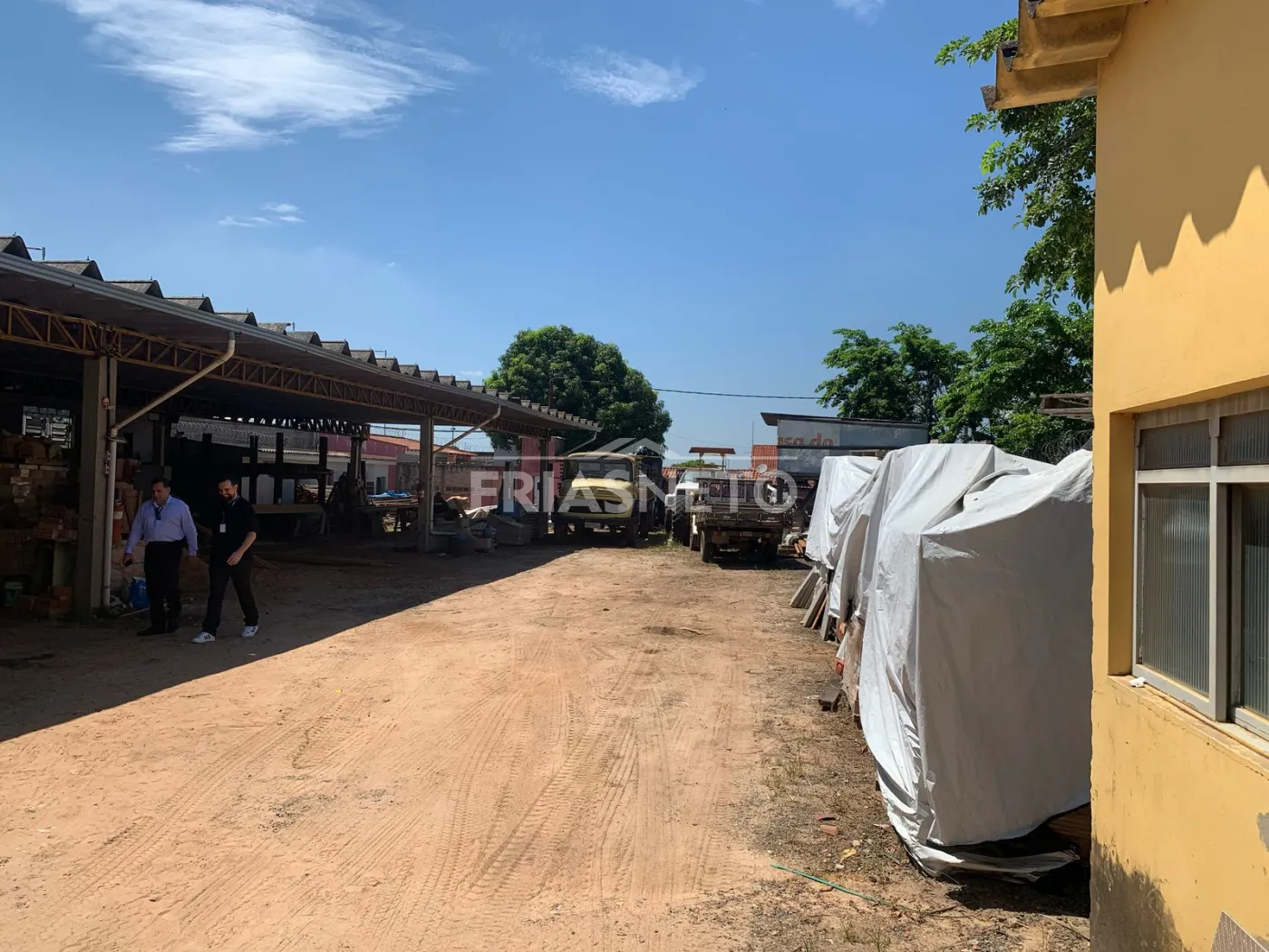 Área externa: espaço amplo com parte coberta e piso de terra