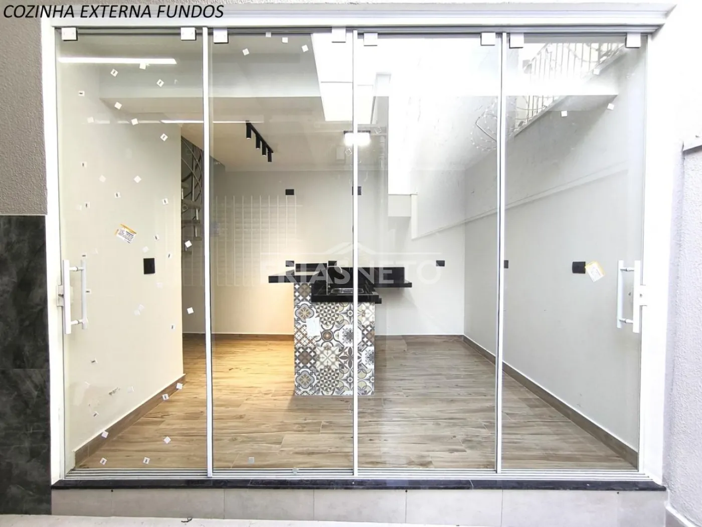 - cozinha separada das salas com ilha e fechamento em blindex