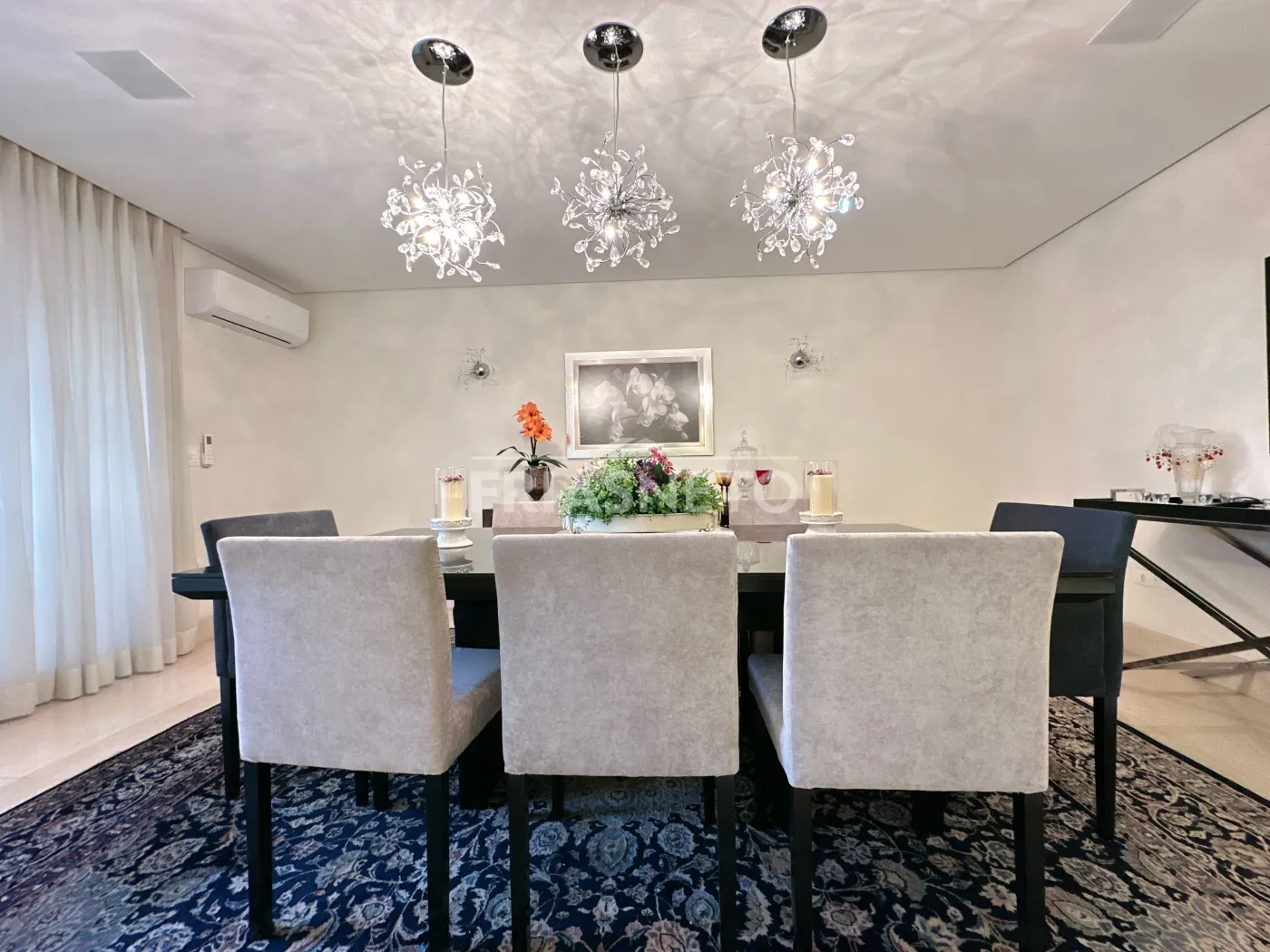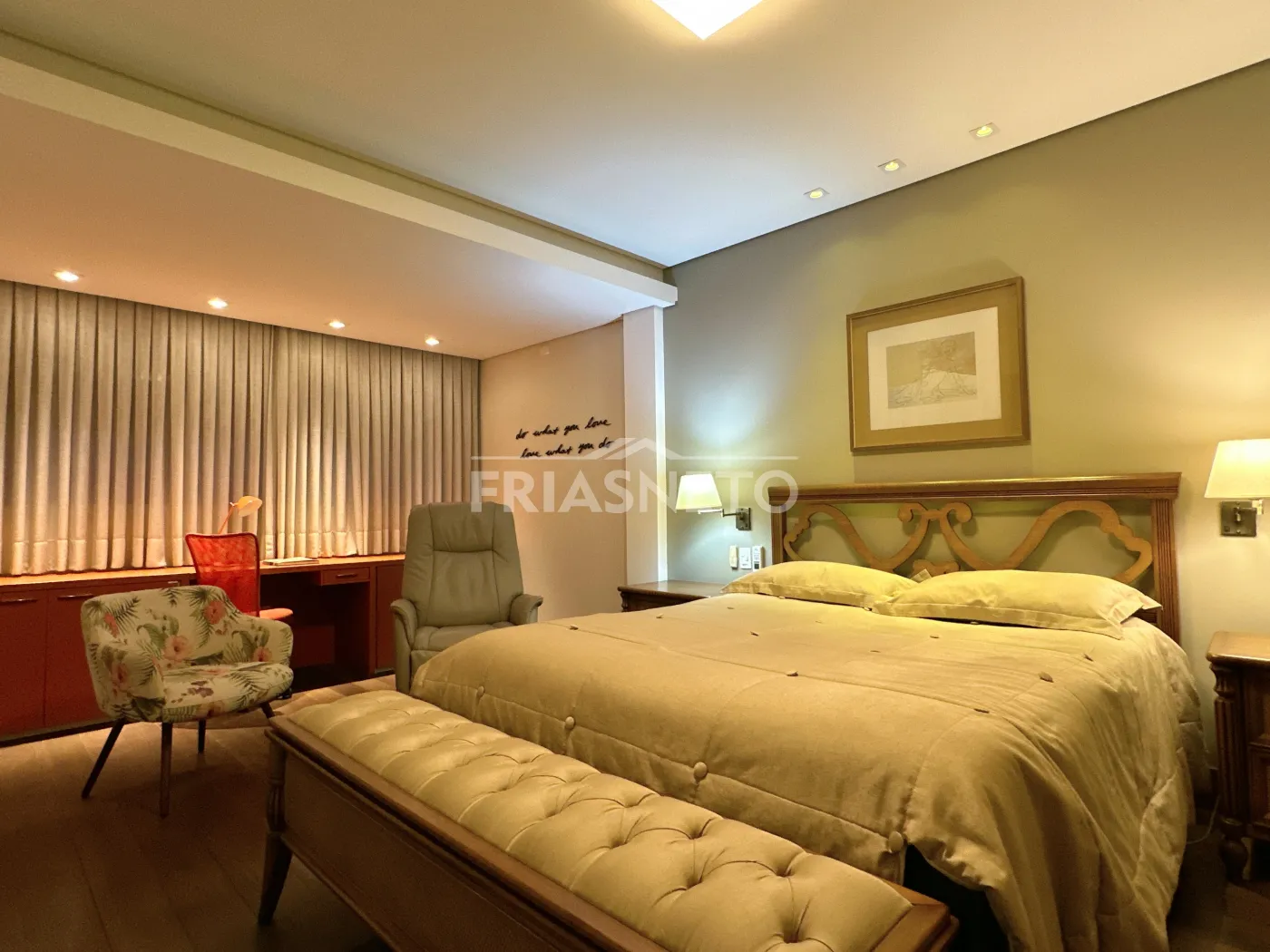 5 suítes (sendo uma master com closet, outra adaptada para home office sofisticado e uma suíte de apoio para funcionários);