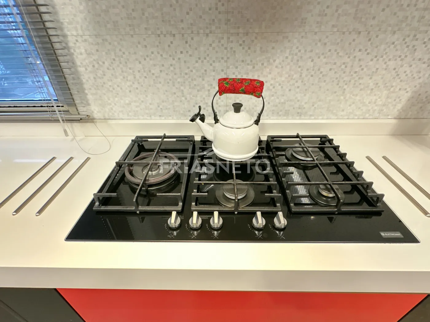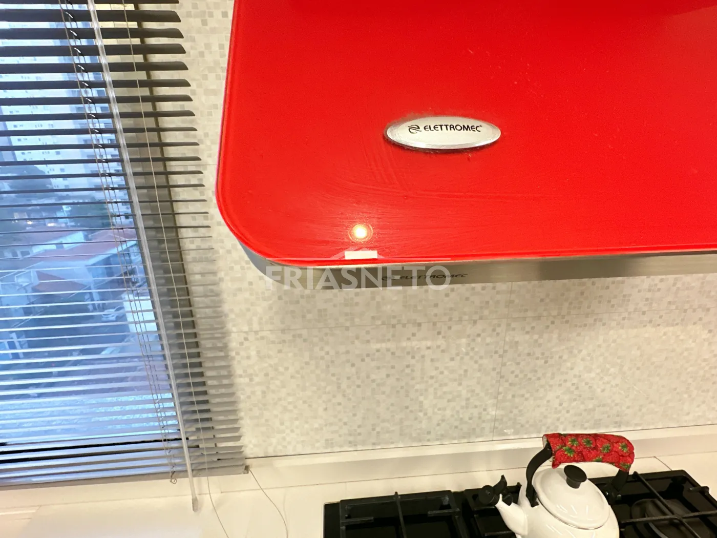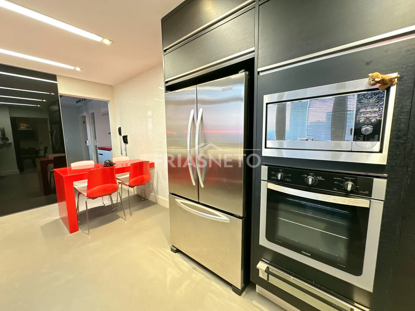 Cozinha equipada com eletrodomésticos Eletromec e geladeira da renomada marca KitchenAid.