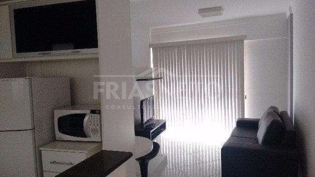Apartamento tipo Flat, mobiliado, sala 2 ambientes com sacada, suíte planejada com armários, cozinha planejada e mobiliada, ar condicionado, 1 vaga de garagem. O condomínio oferece portaria 24hs, solarium, piscina, salão de festa e espaço gourmet.