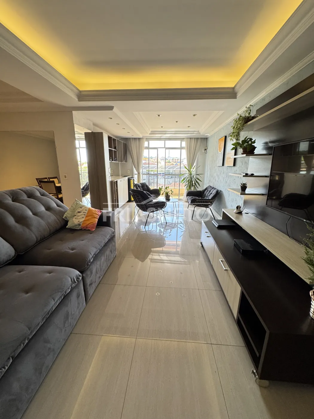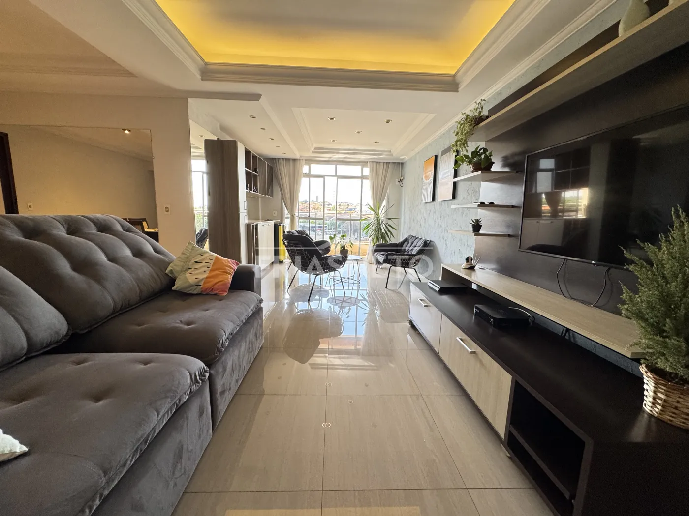 Ampla sala com dois ambientes, perfeita para receber amigos e familiares, com uma sacada que proporciona uma vista agradável e ventilação natural,Lavabo