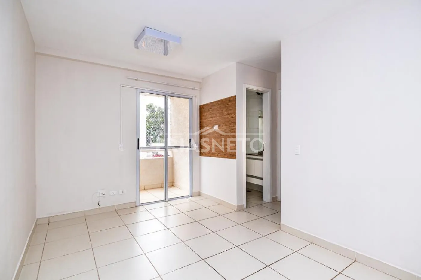 Sala para dois ambientes com sacada, garantindo iluminação e ventilação natural