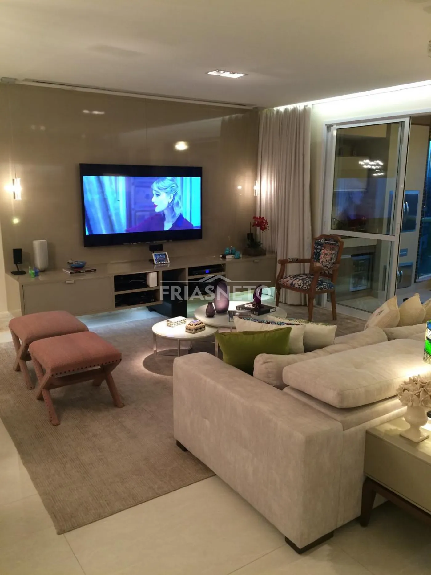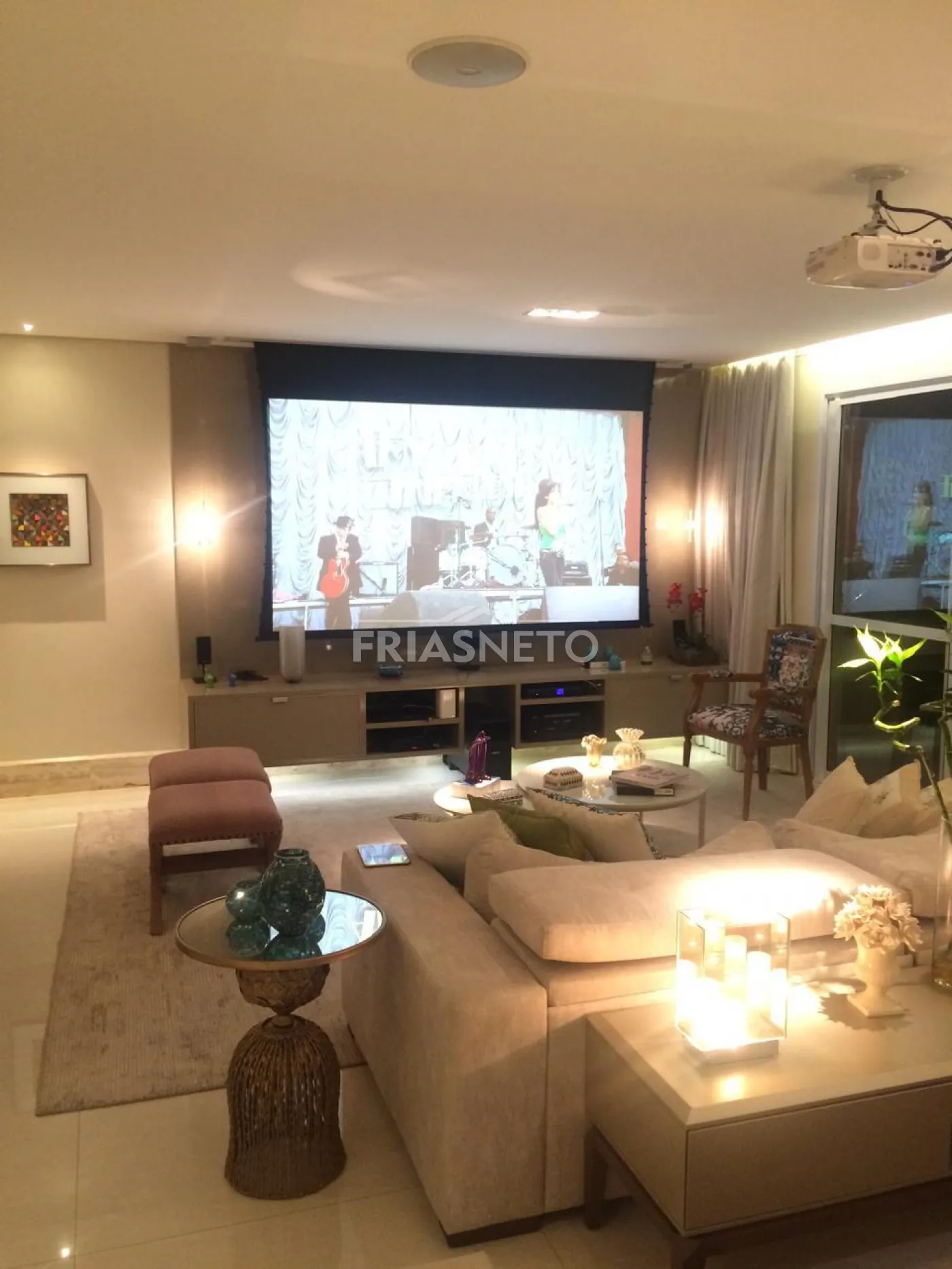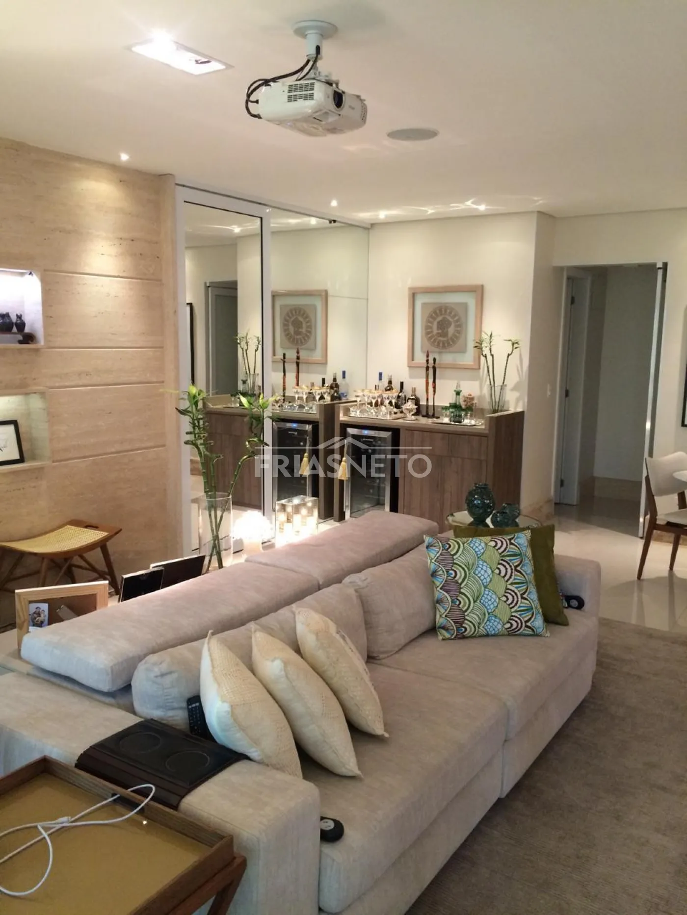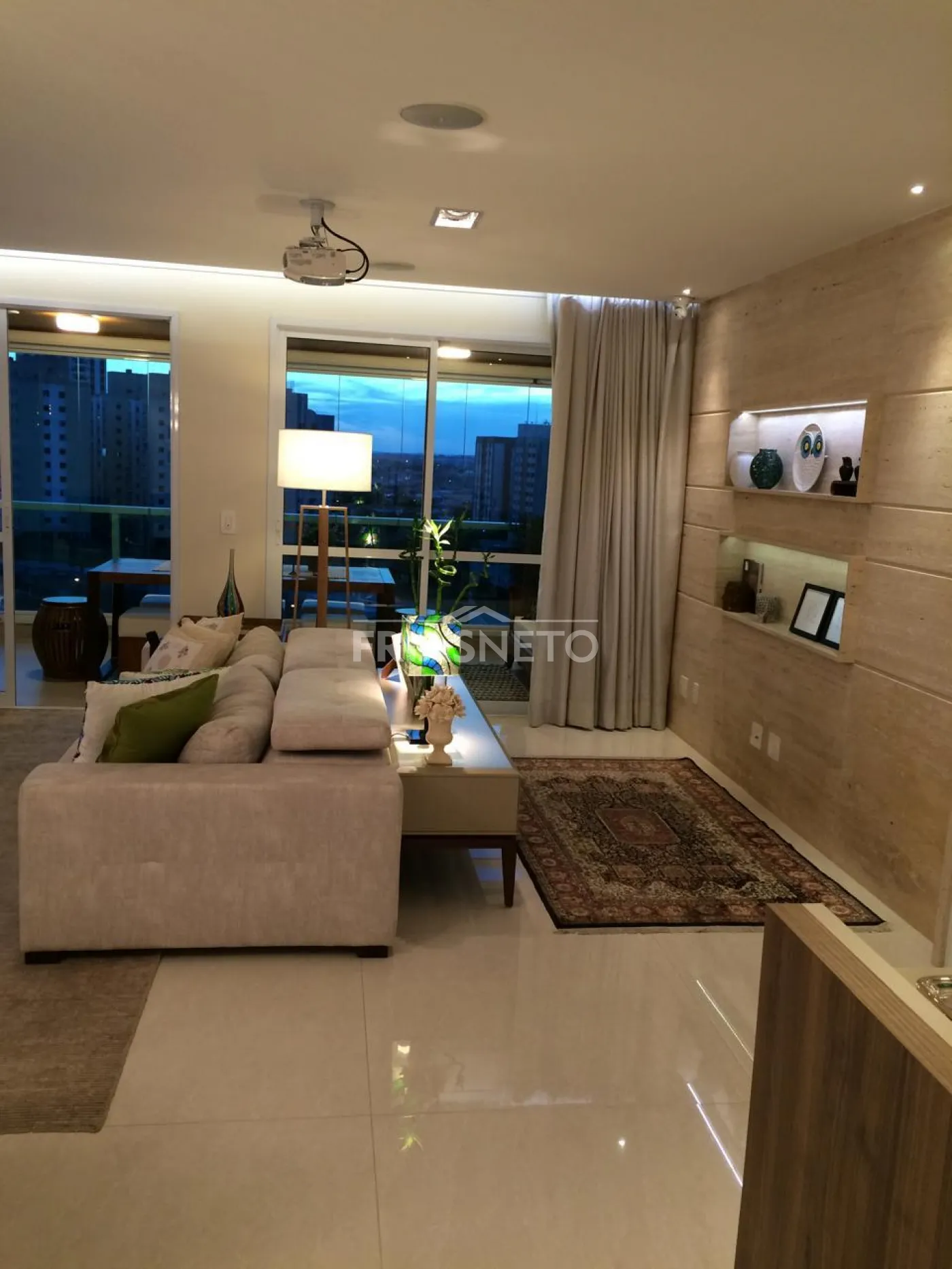 - Painel em laka e Painel Travertino Italiano na sala.