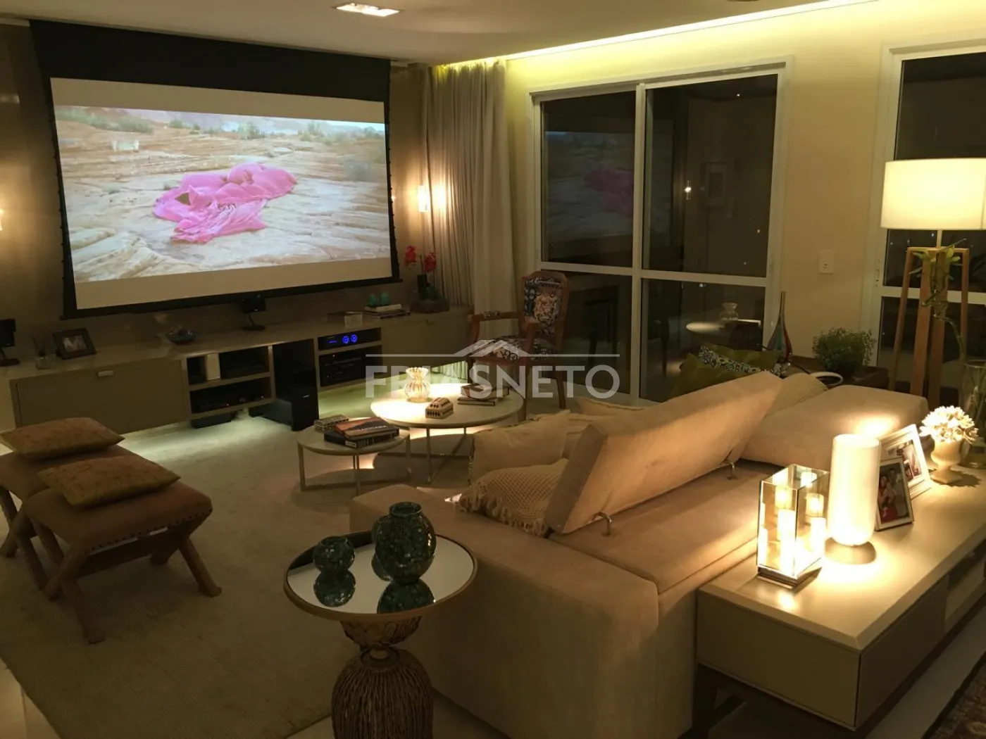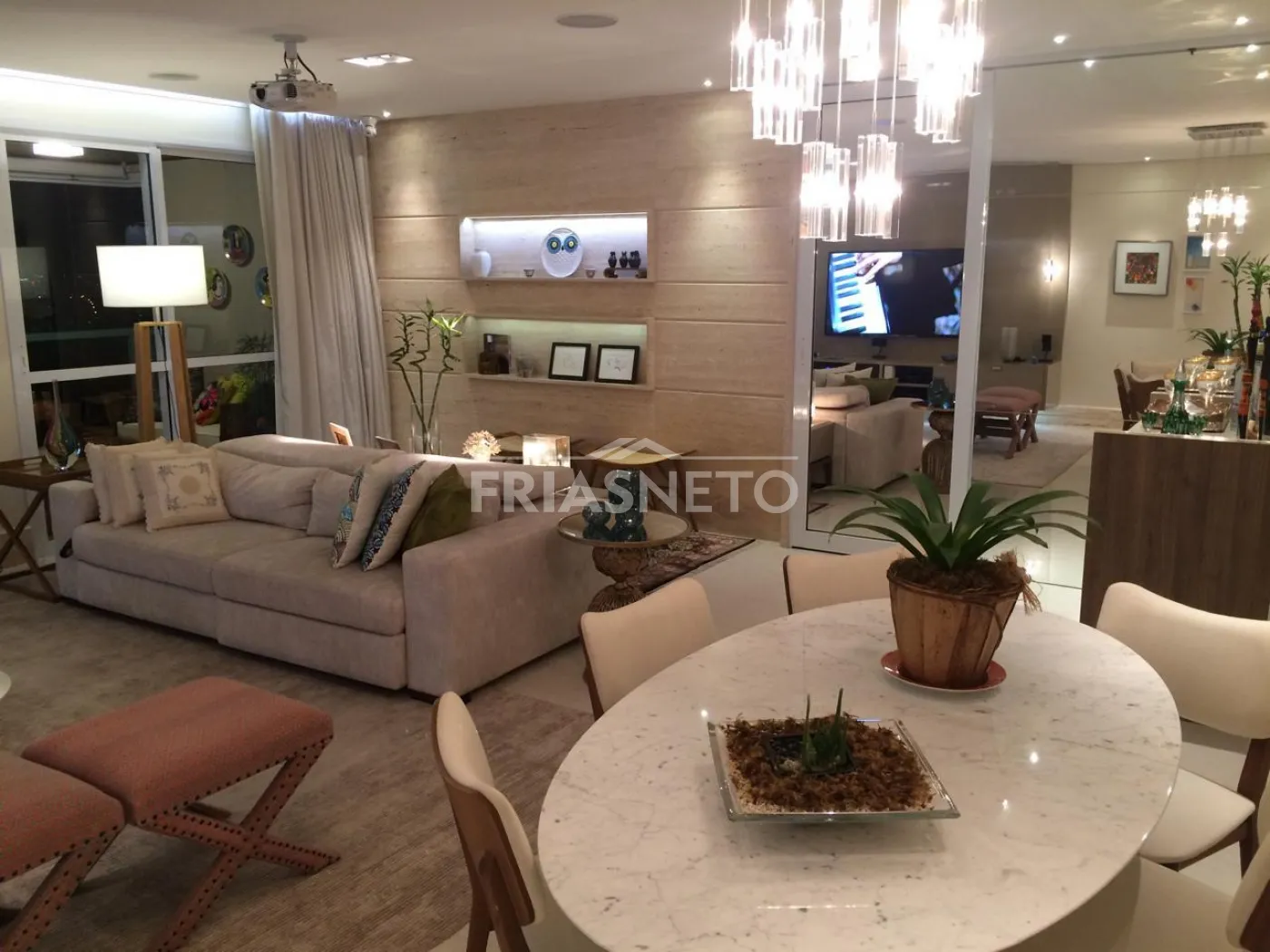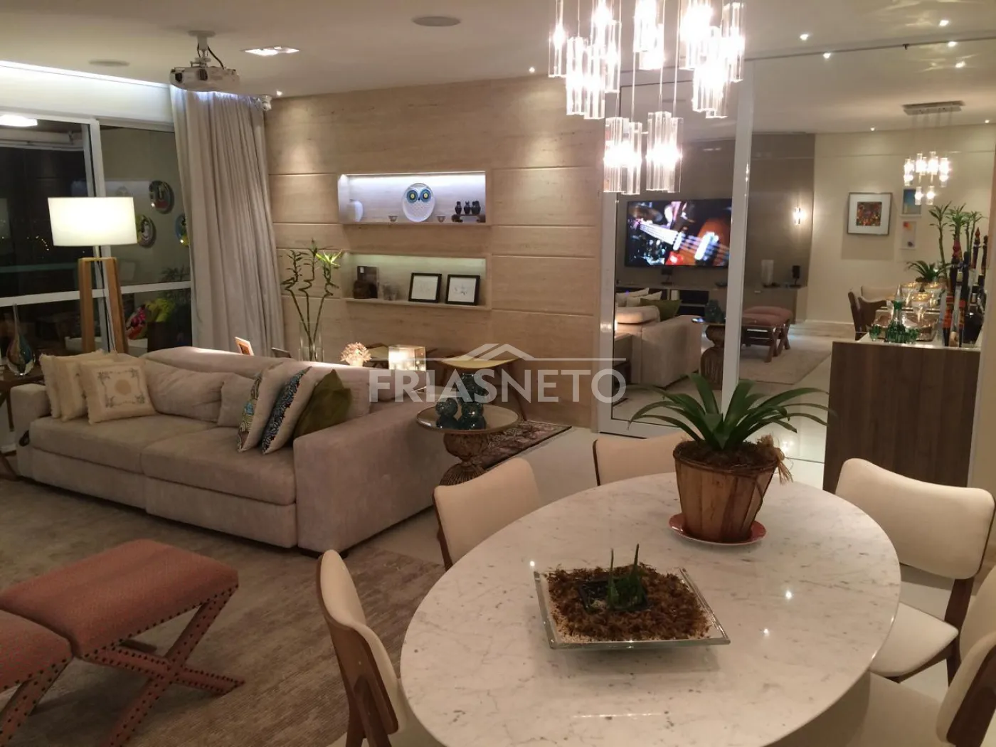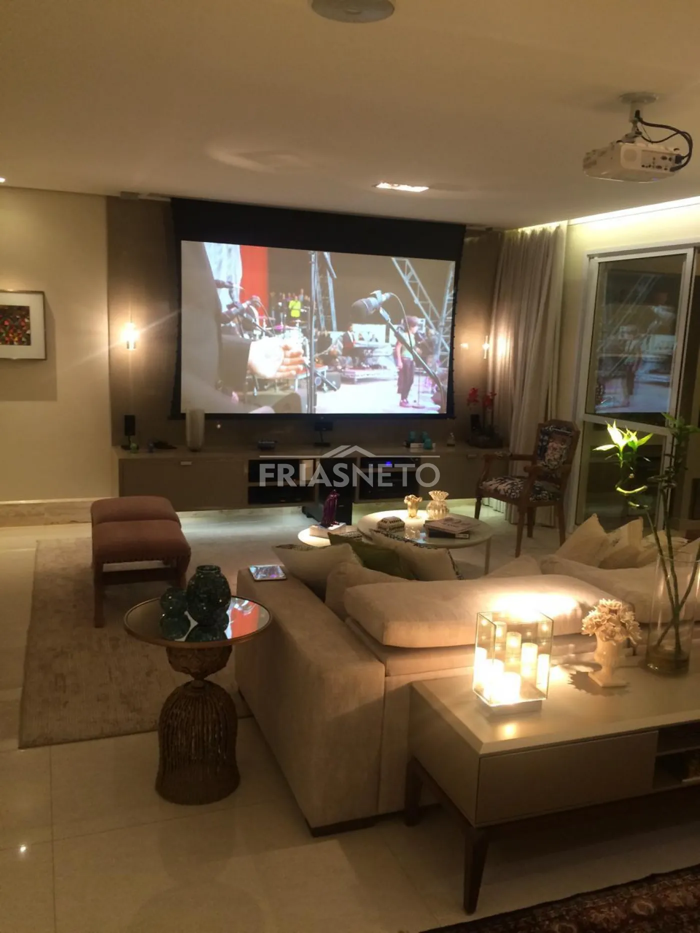 - Painel em laka e Painel Travertino Italiano na sala.