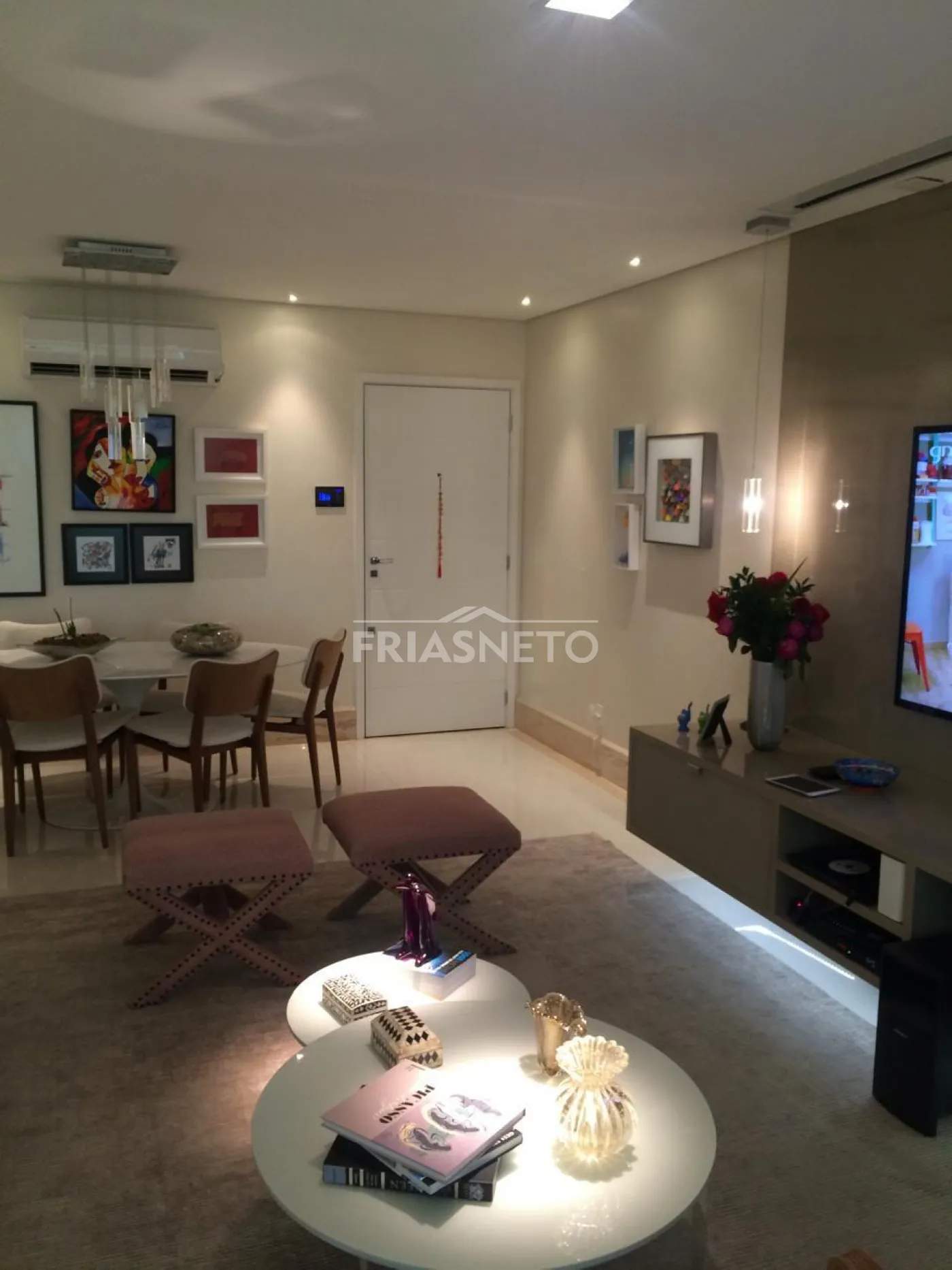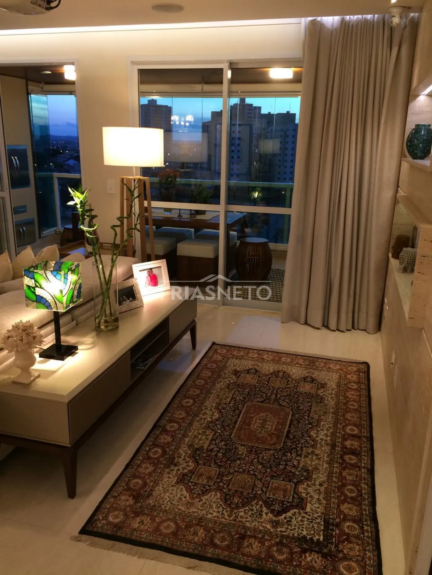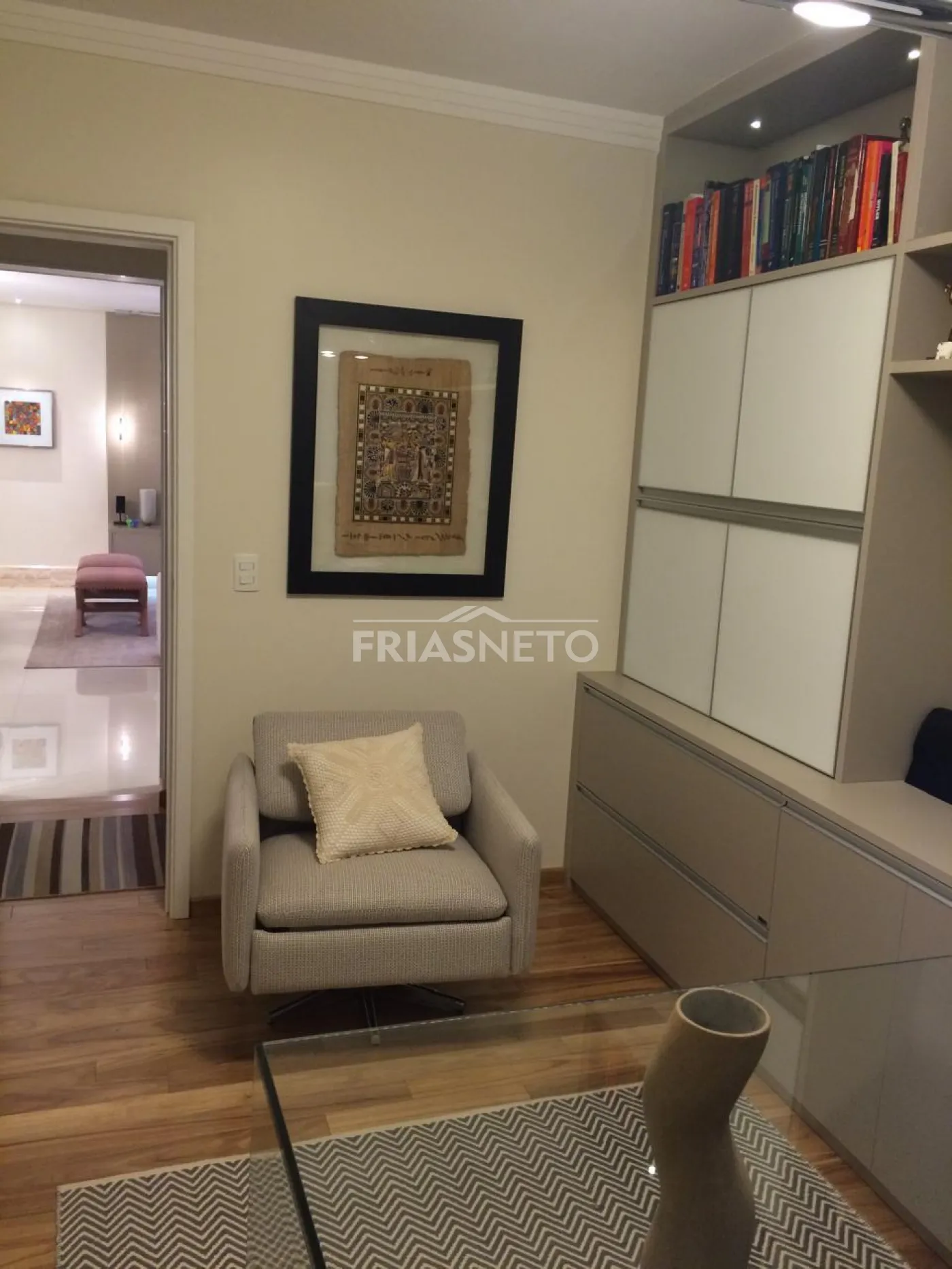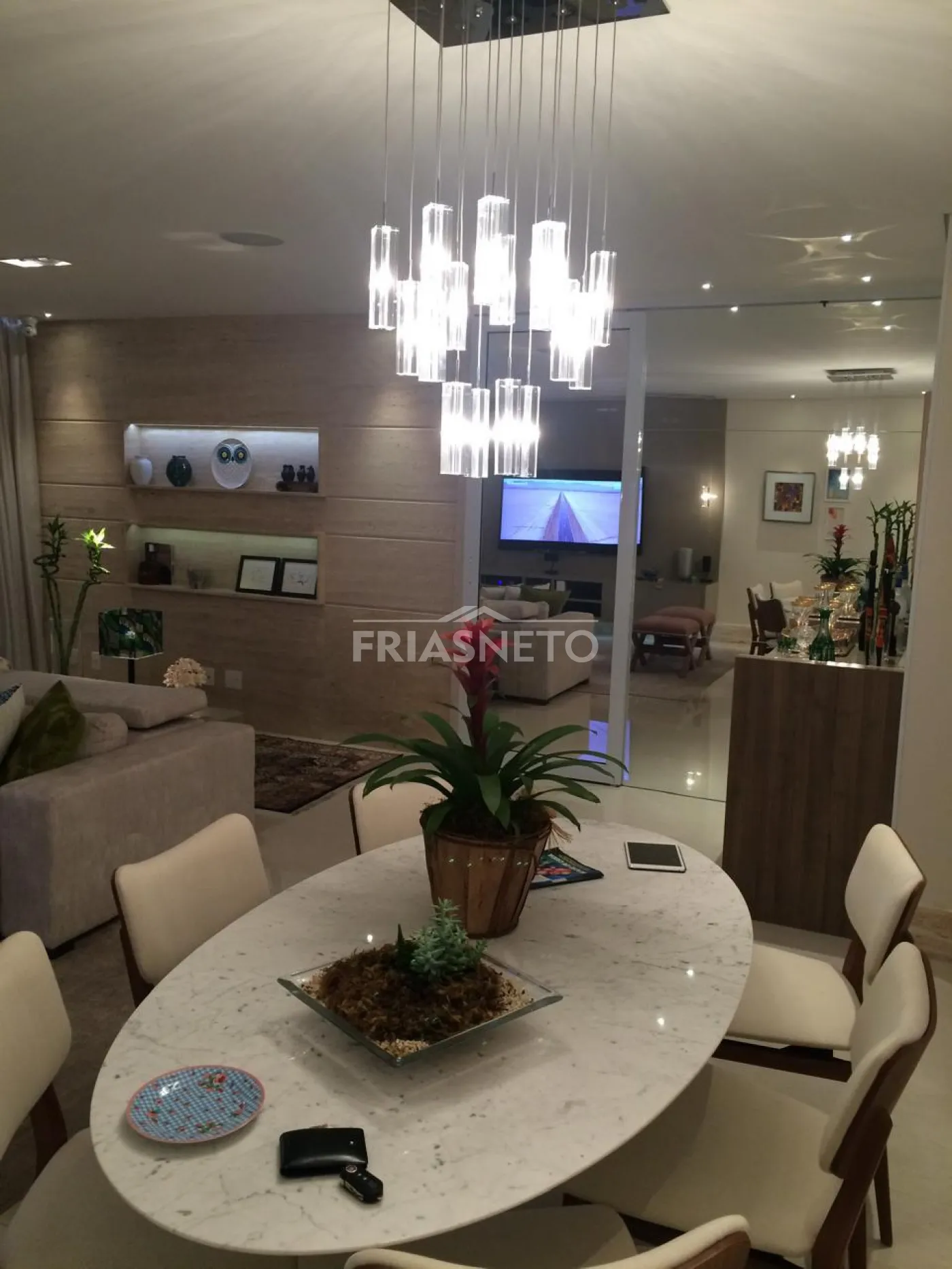 - Painel em laka e Painel Travertino Italiano na sala.