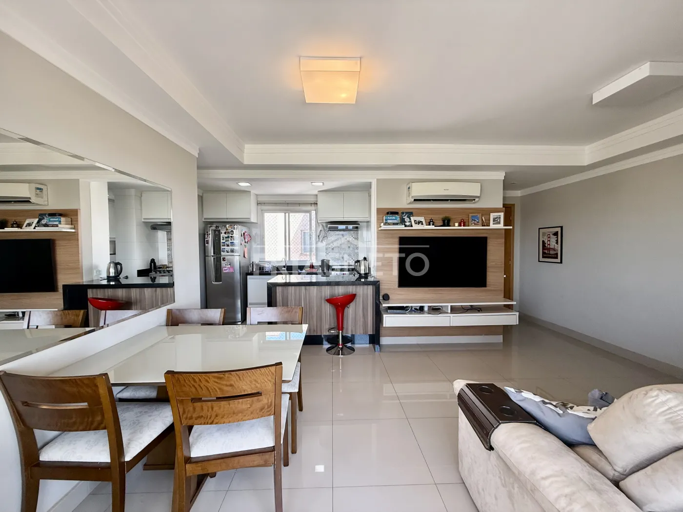 - sala integrada com a cozinha