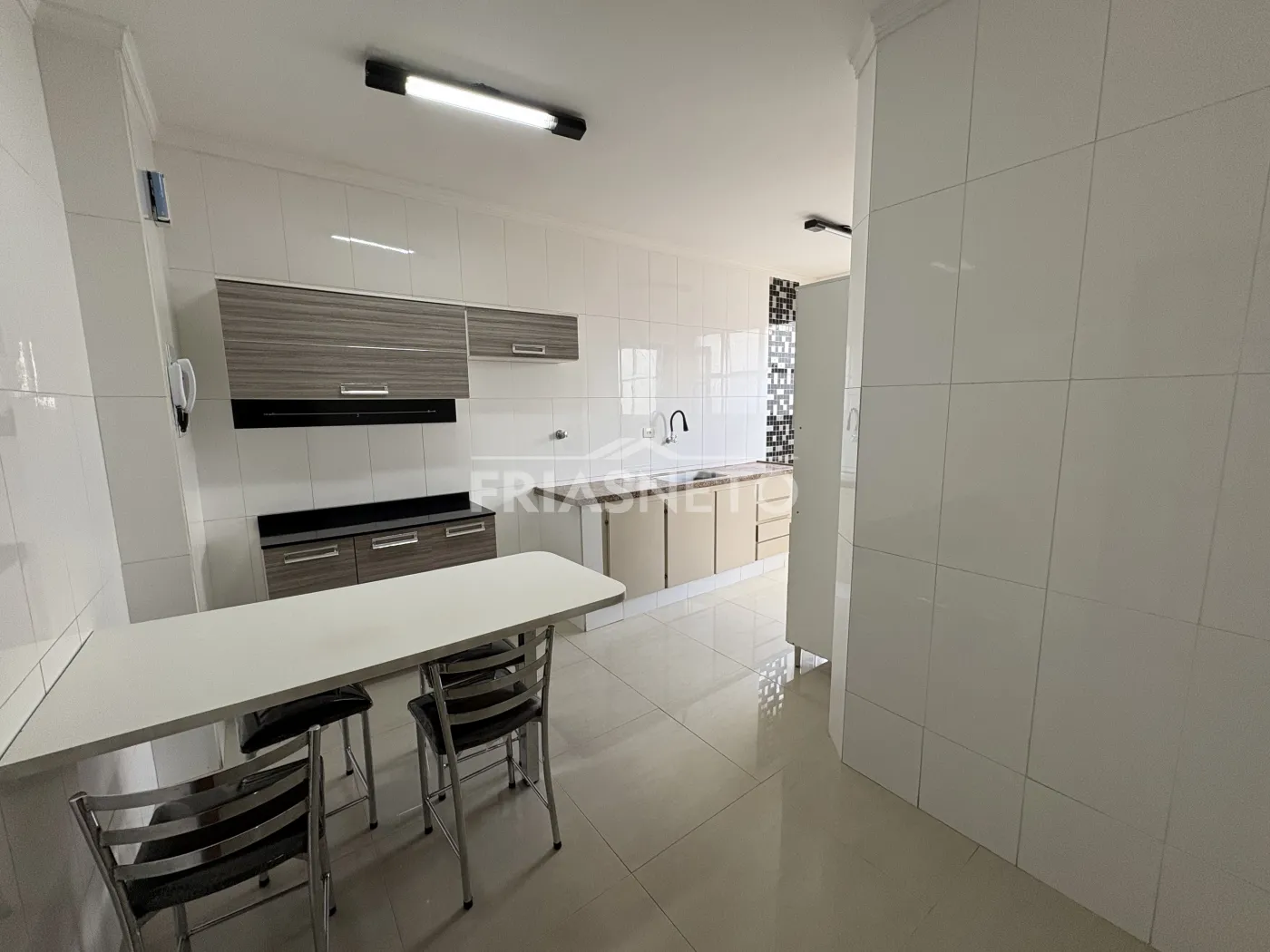 Cozinha espaçosa com armários.