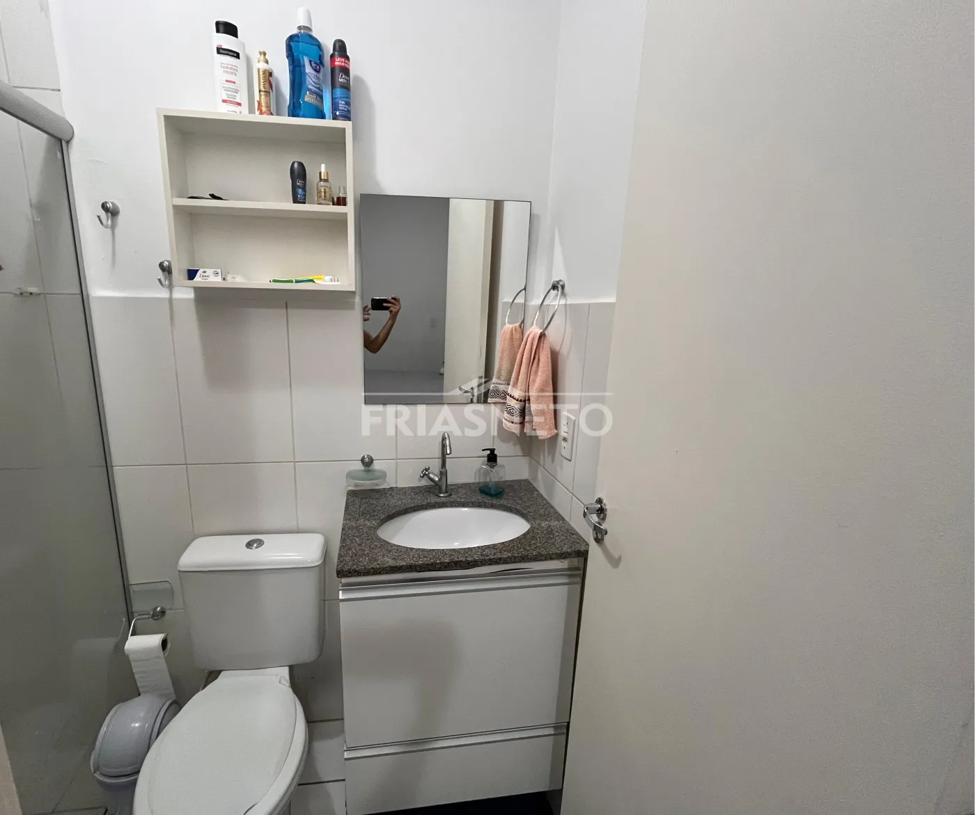 Banheiro social com gabinete e box blindex