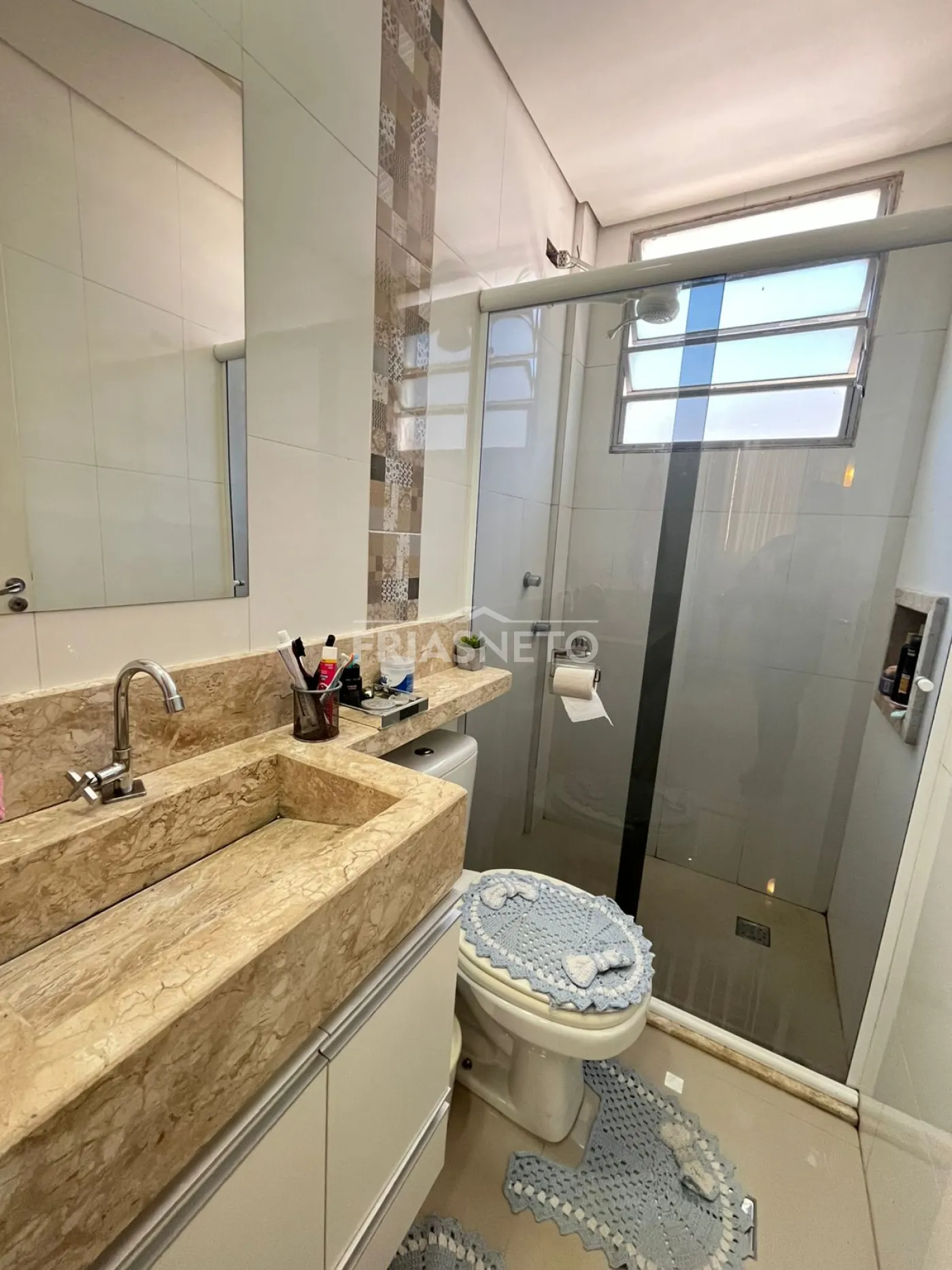 Banheiro social: com gabinete e box