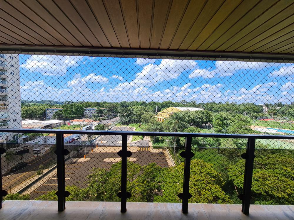Ampla sala para três ambientes, com sacada e vista panorâmica para a ESALQ