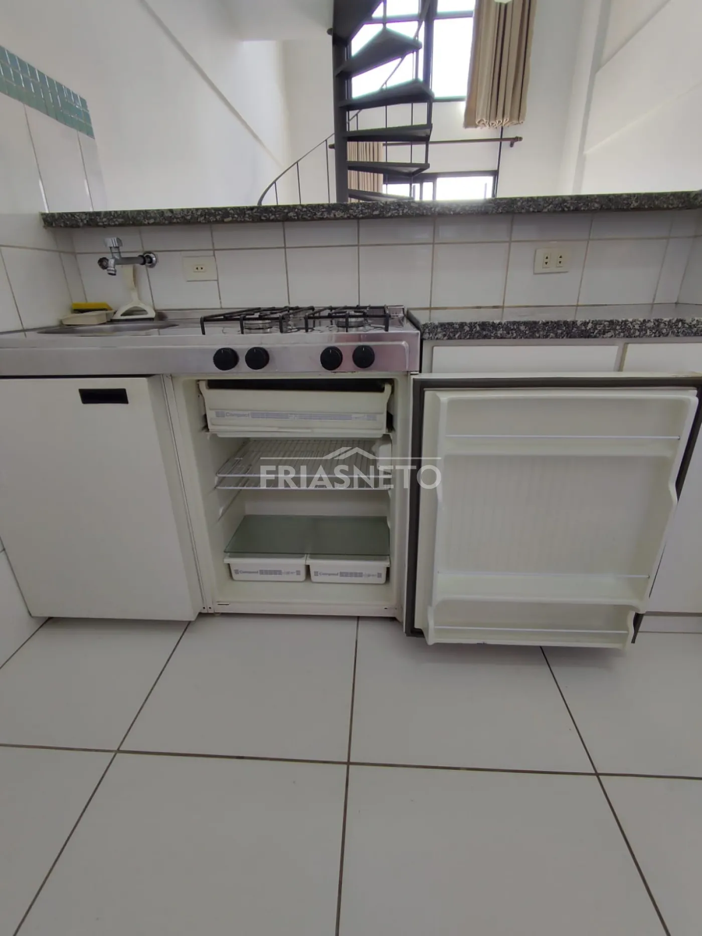 Cozinha americana, com frigobar e cooktop