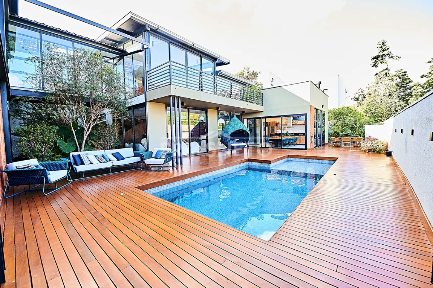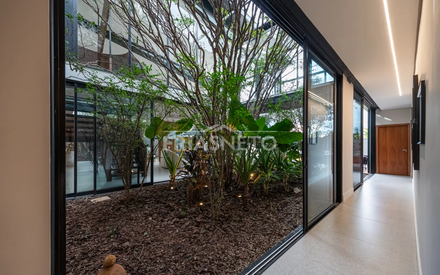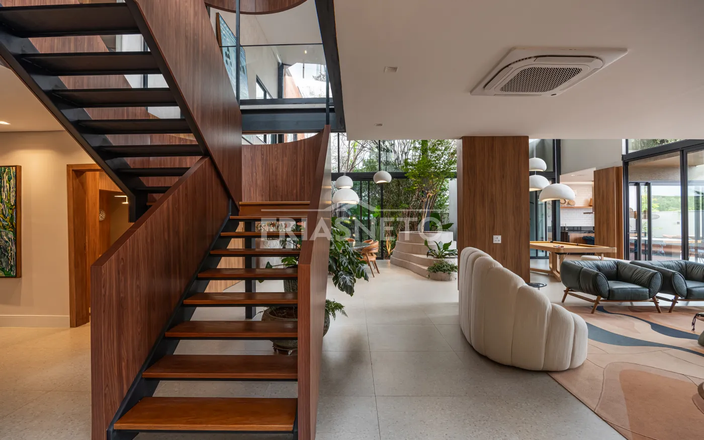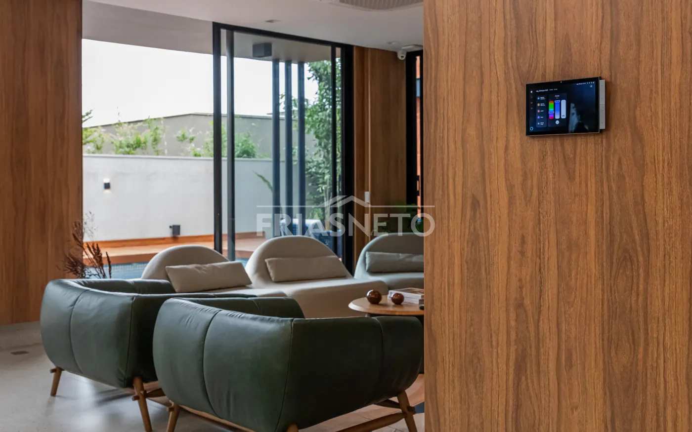 Casa totalmente automatizada, com controle inteligente de iluminação, som e climatização.