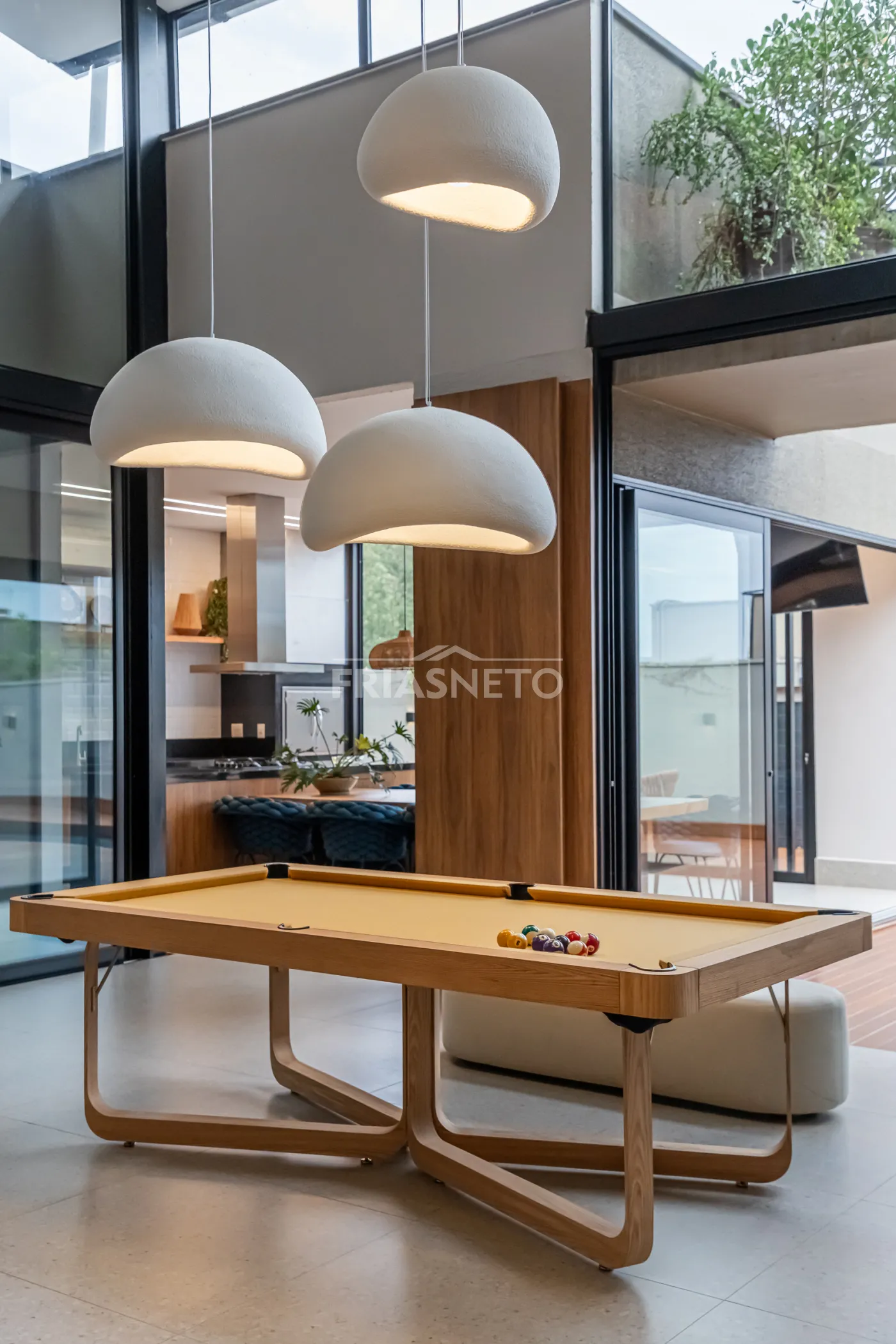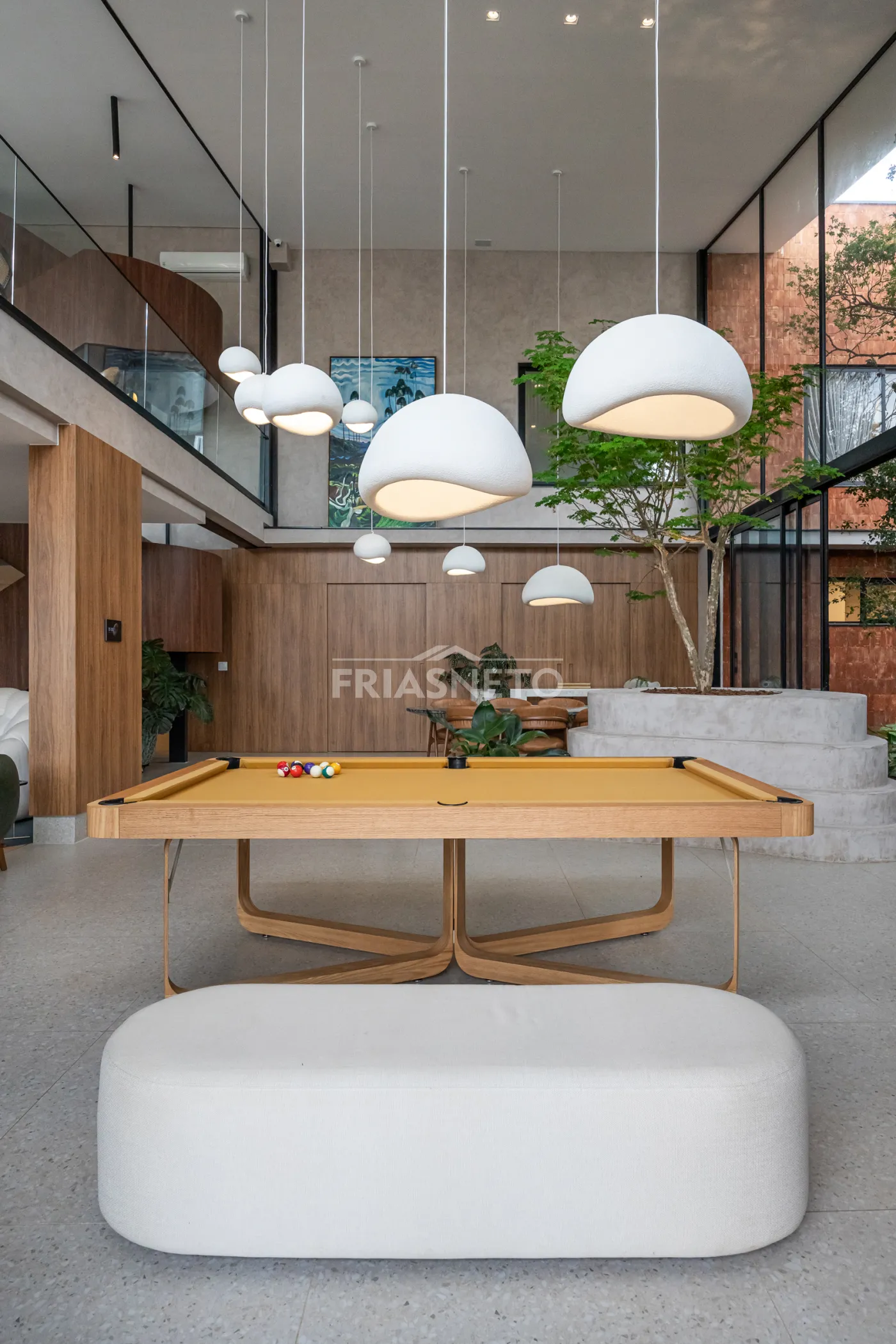 Salão de jogos com mesa de sinuca exclusiva Mula Preta.