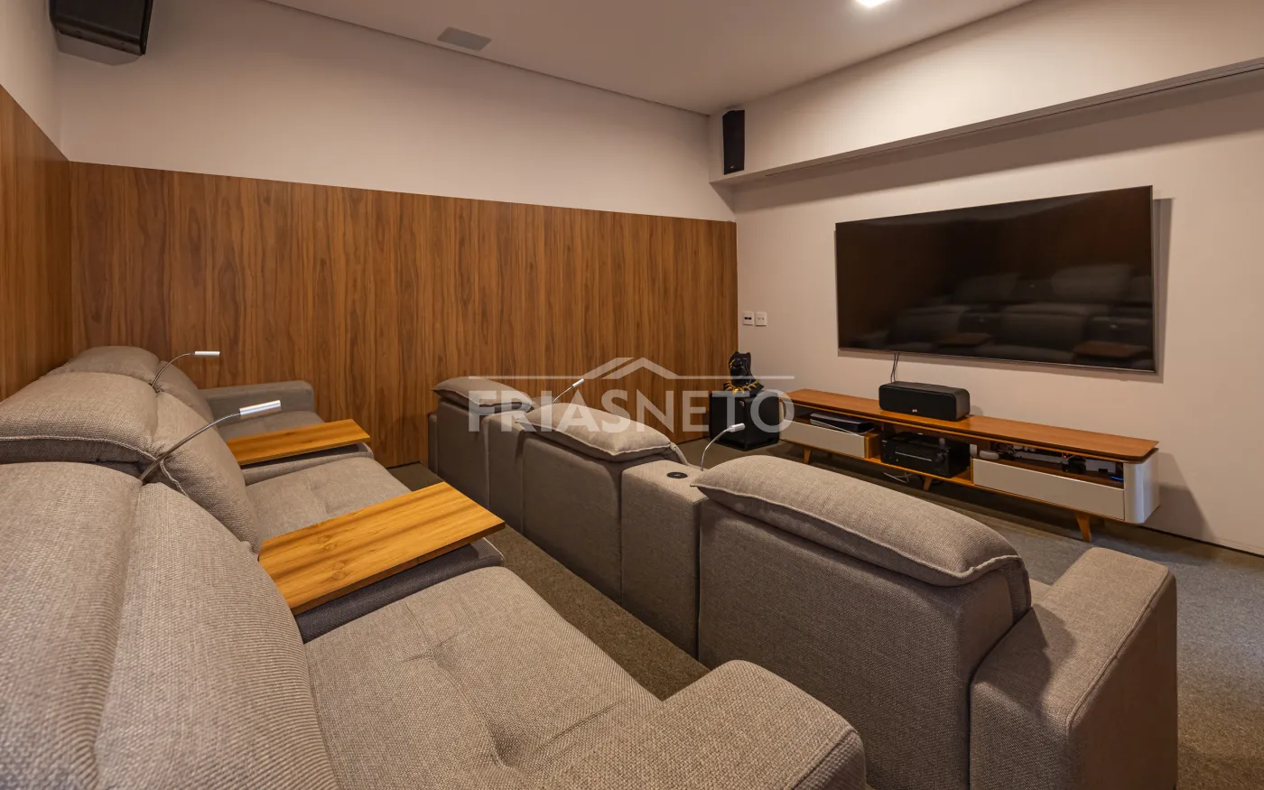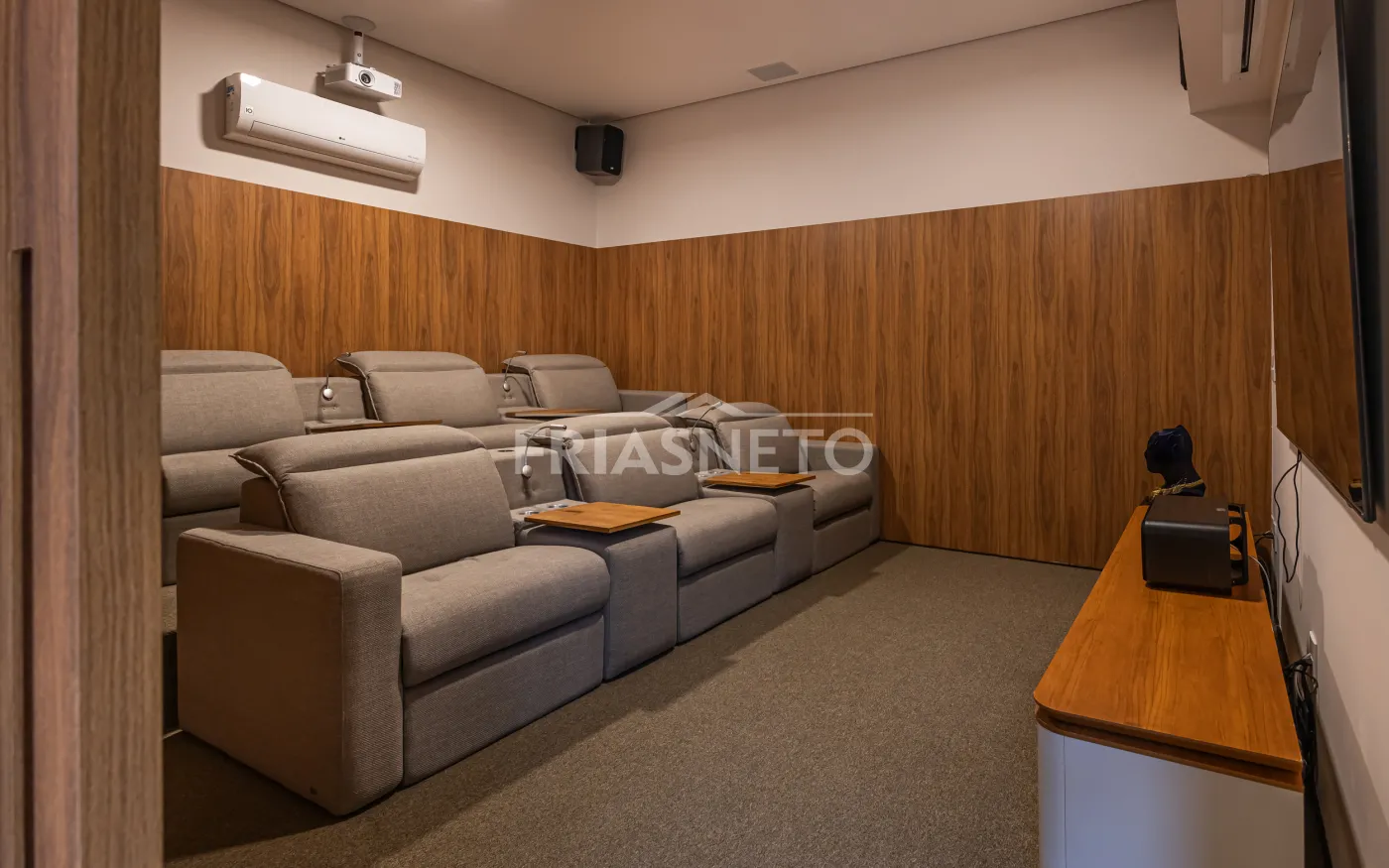 Home cinema com capacidade para até 12 pessoas, equipado com tecnologia de última geração.