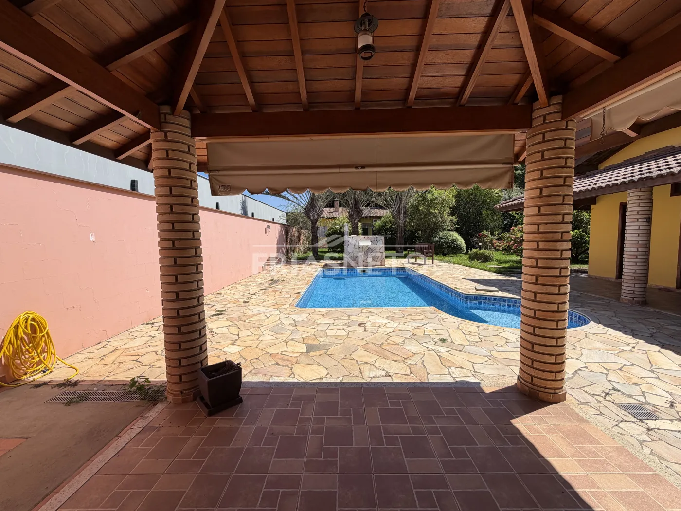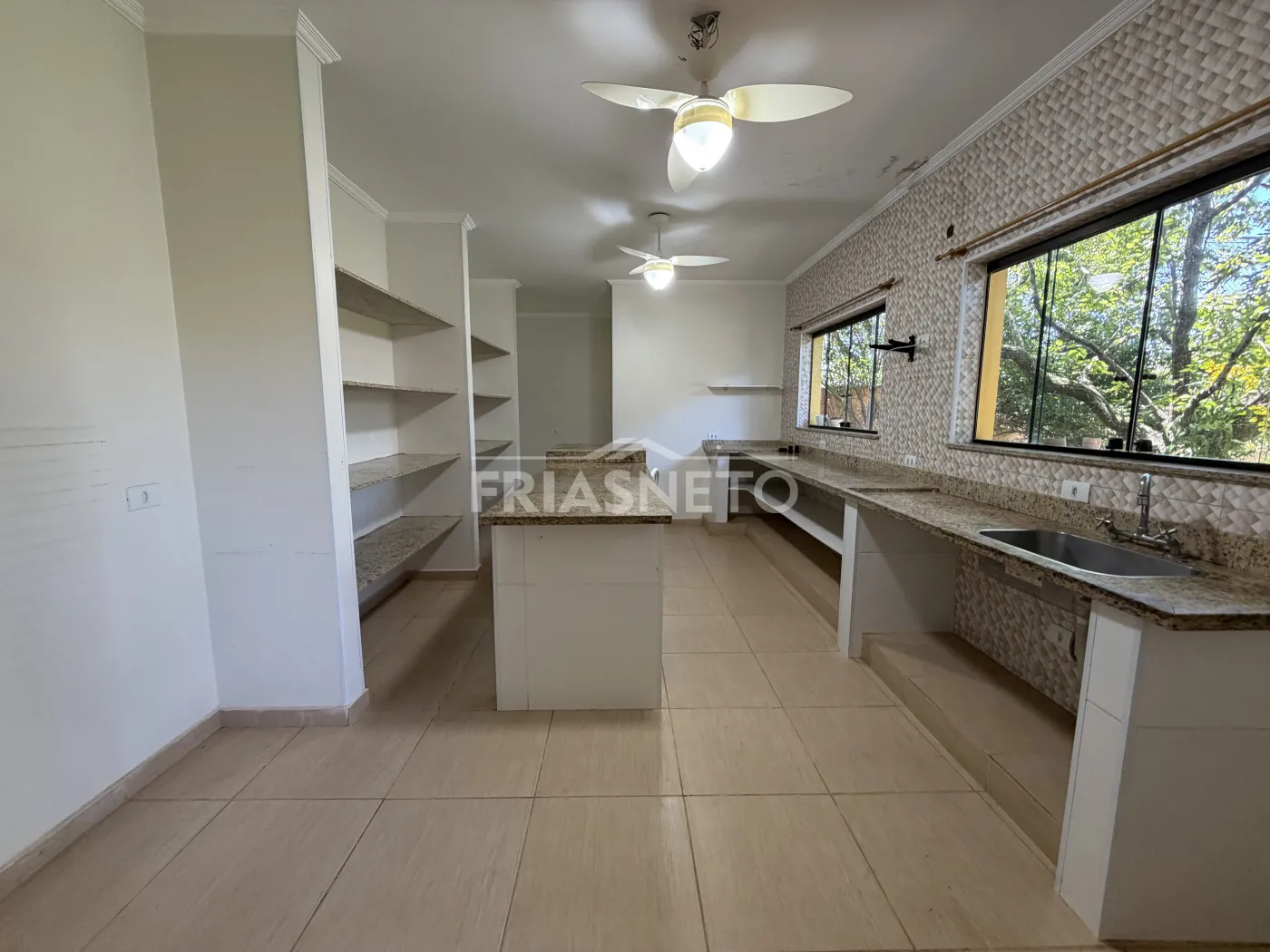 Nos fundos, há uma construção independente que contempla espaço preparado para cozinha industrial, depósito e mais uma suíte, proporcionando diversas possibilidades de uso ? seja para apoio residencial, área de serviço ampliada ou até mesmo atividade comercial permitida pelo condomínio.
