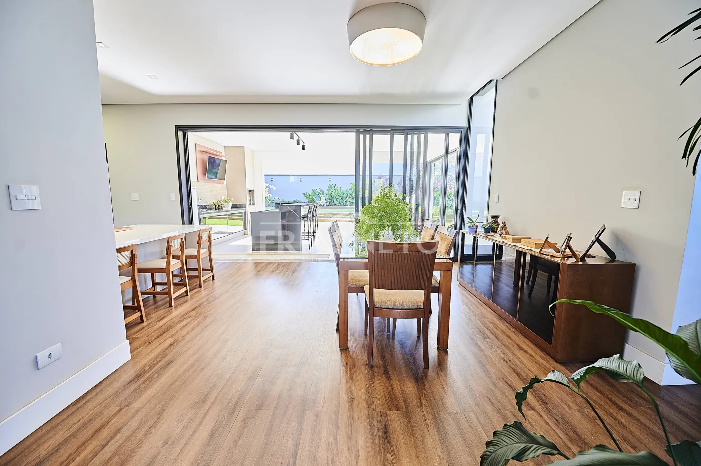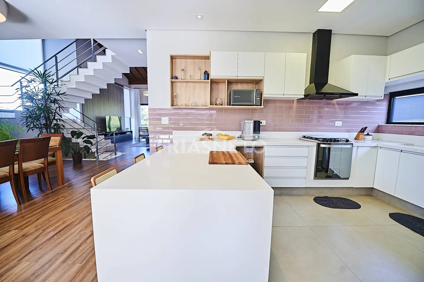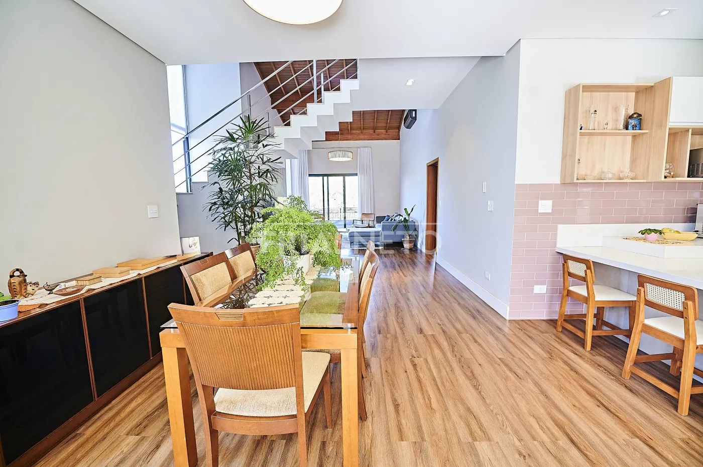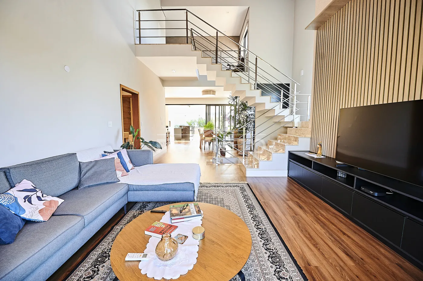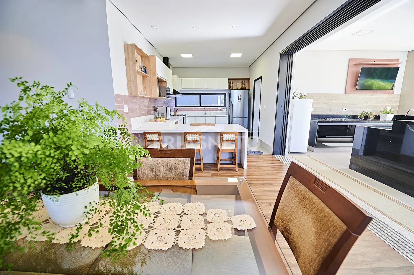 - Sala integrada, promovendo amplitude e elegância aos ambientes;