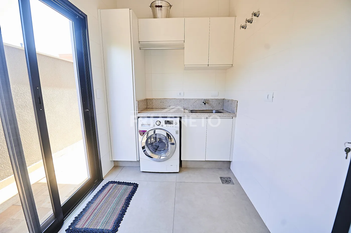 Lavabo, lavanderia, garagem para 2 carros cobertos.