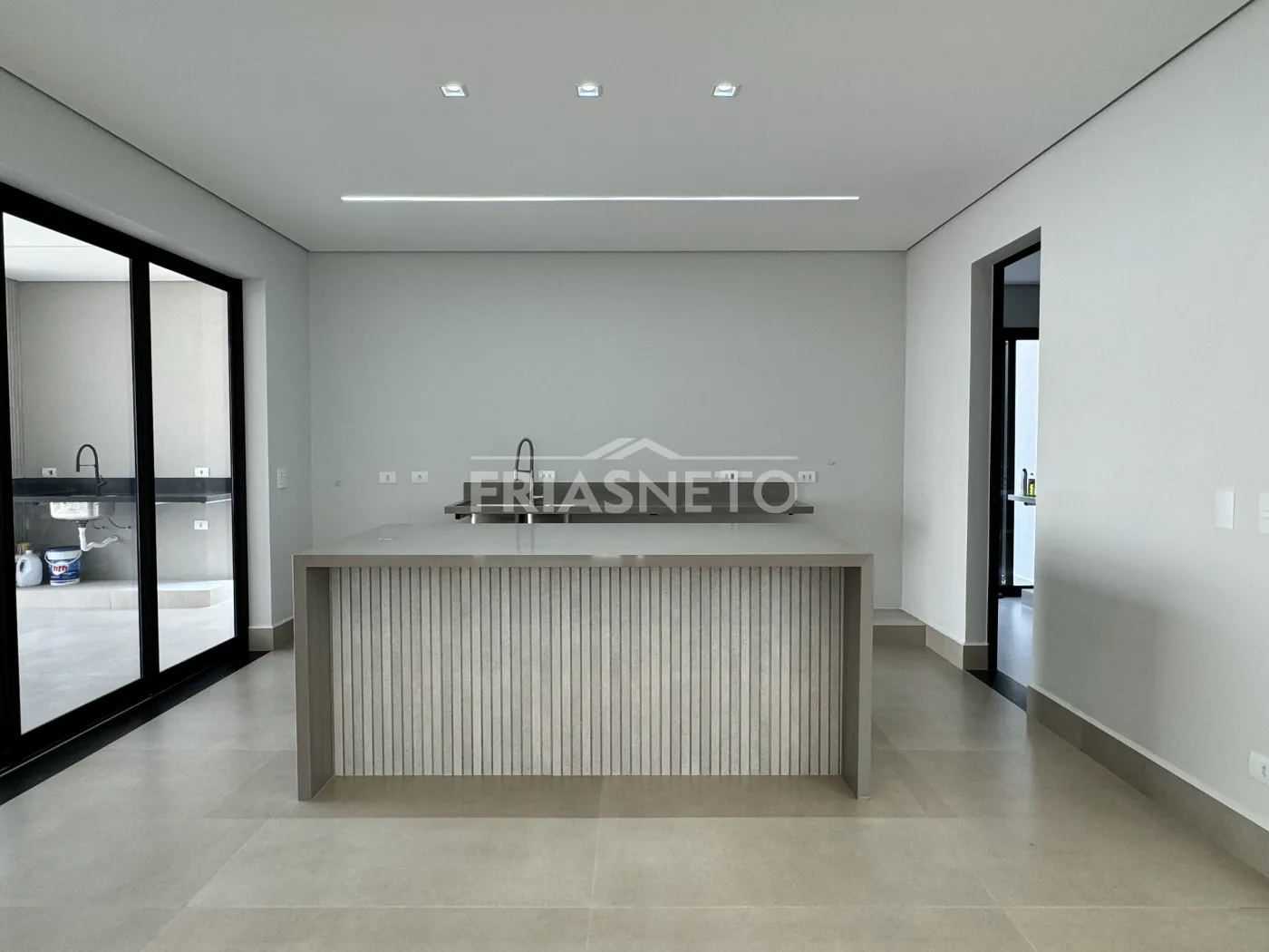 A espaçosa sala é integrada à cozinha, criando um ambiente perfeito para momentos de convivência com familiares e amigos.