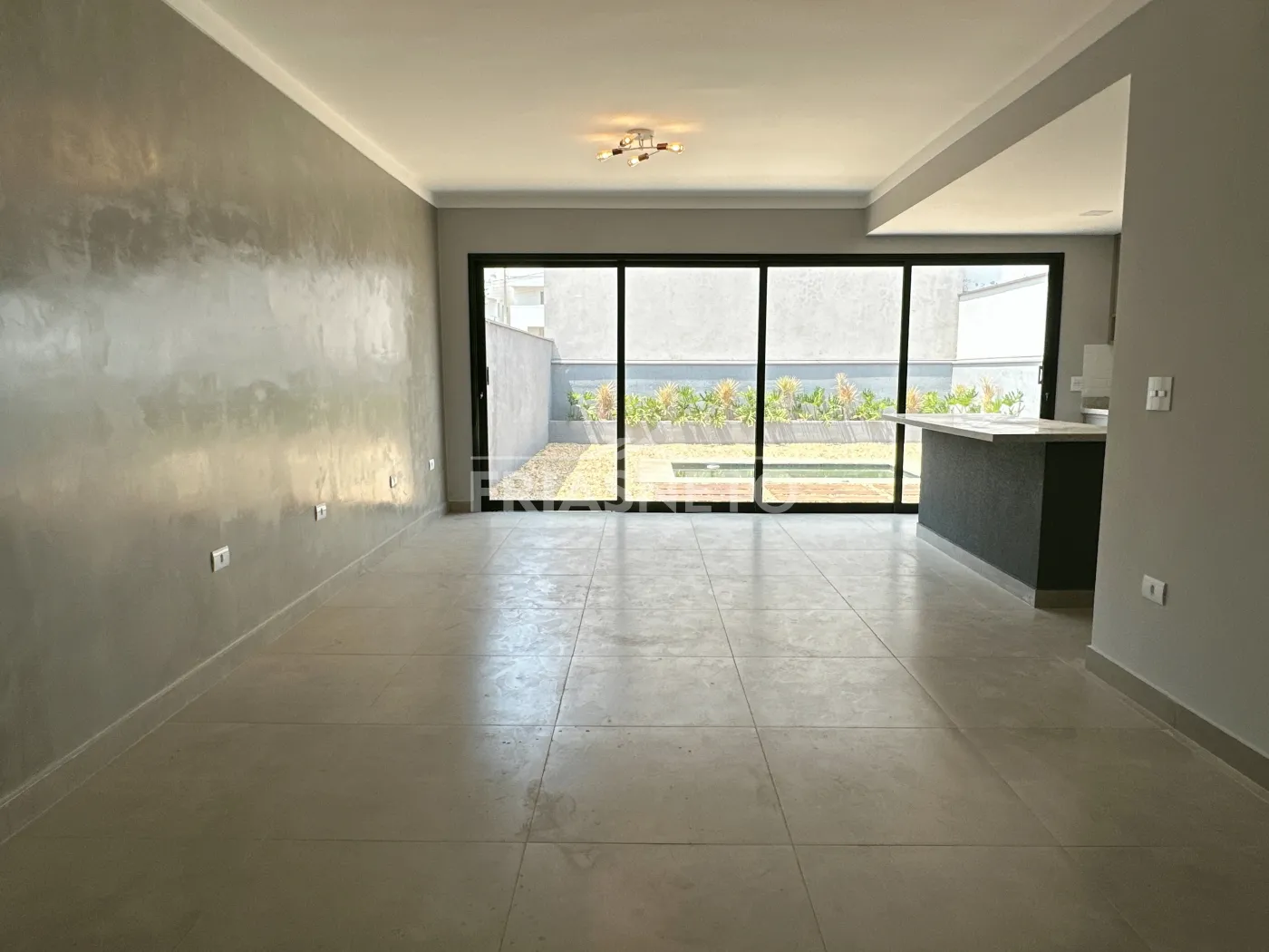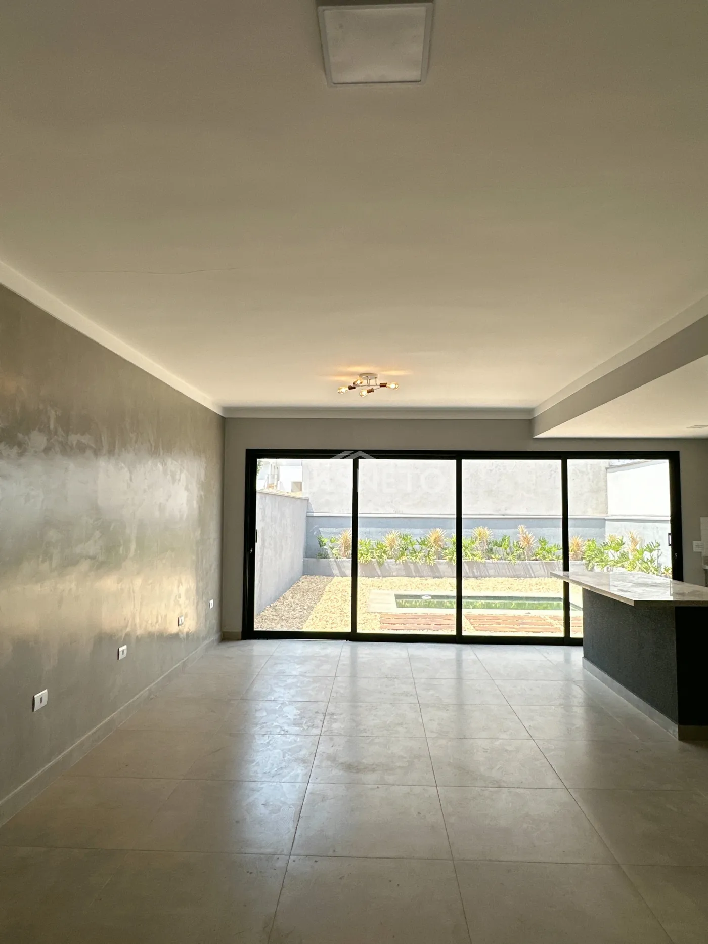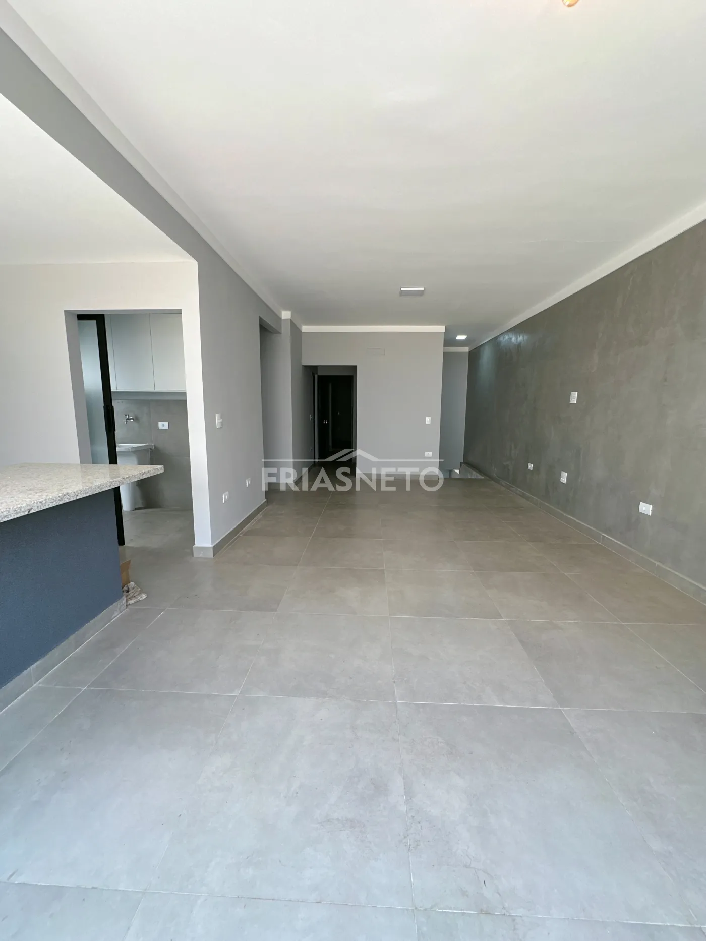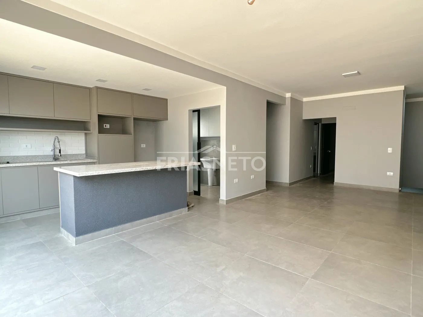 A ampla sala integrada à cozinha americana convida à convivência e à descontração.