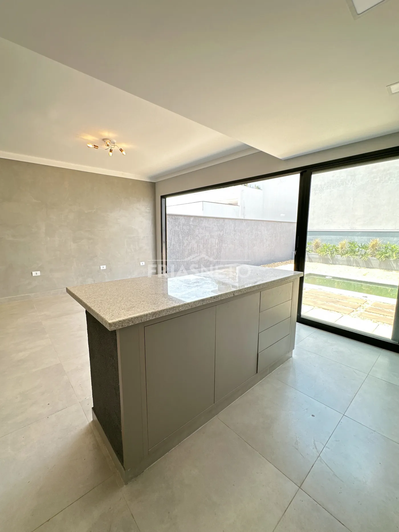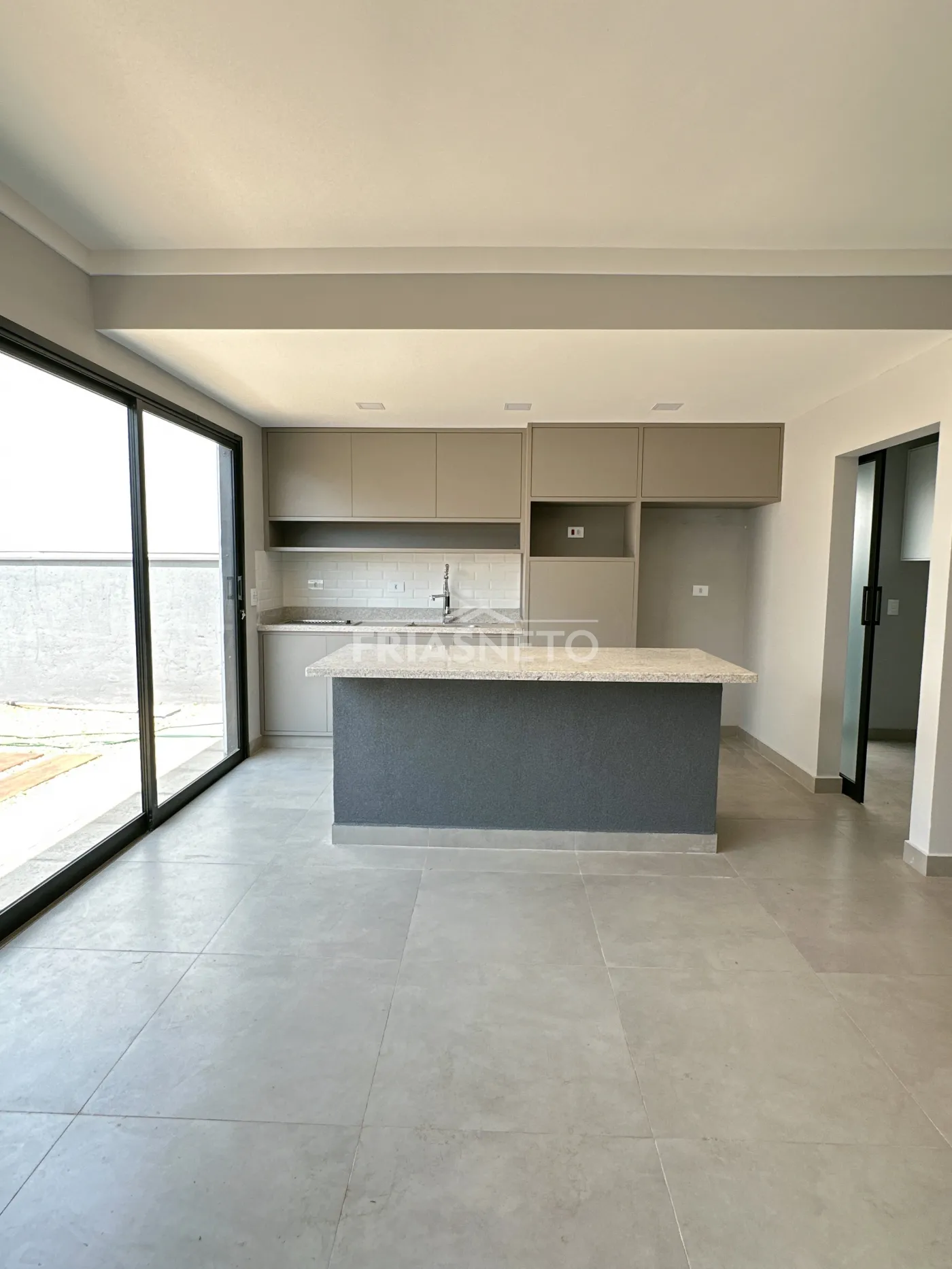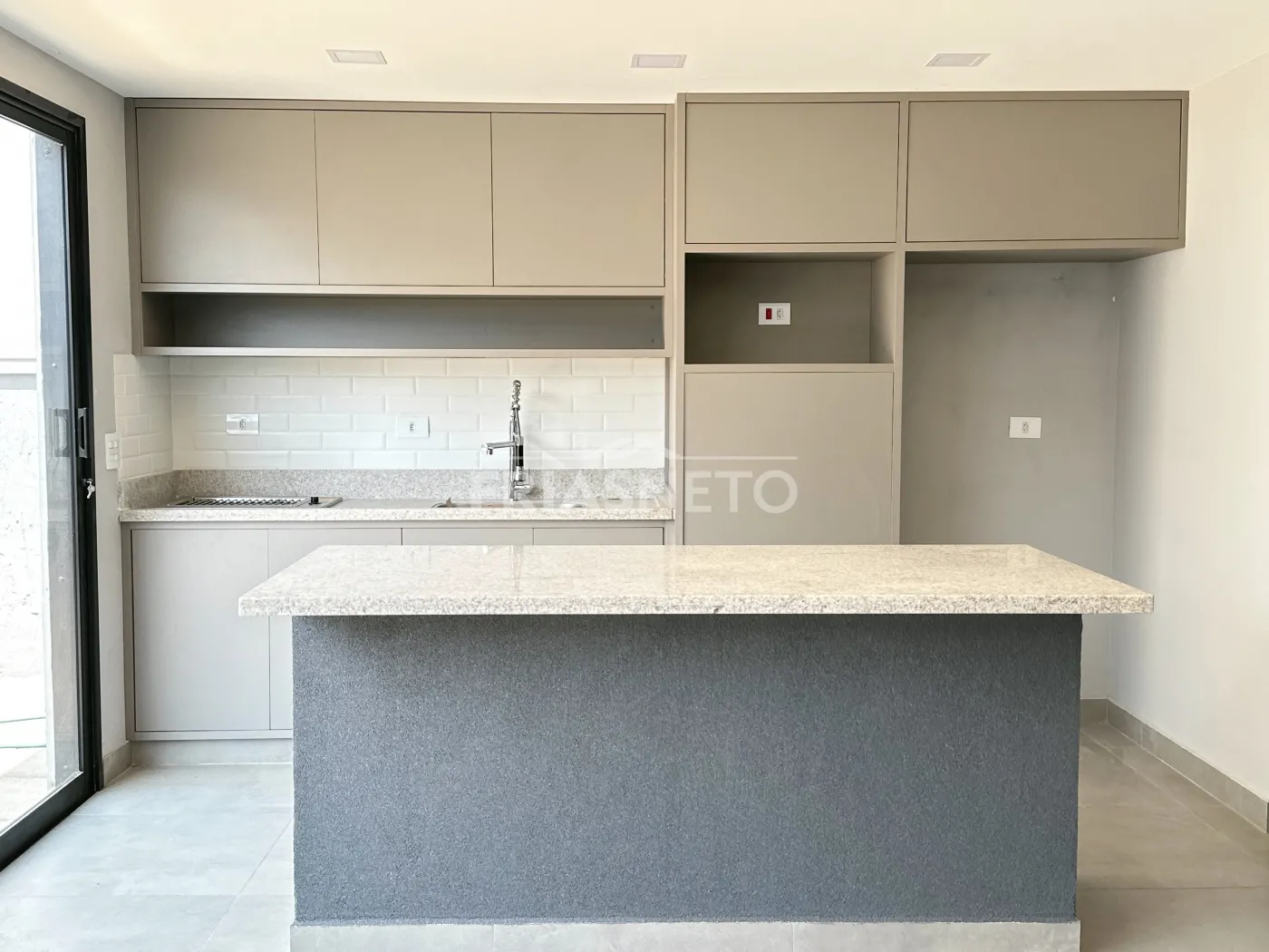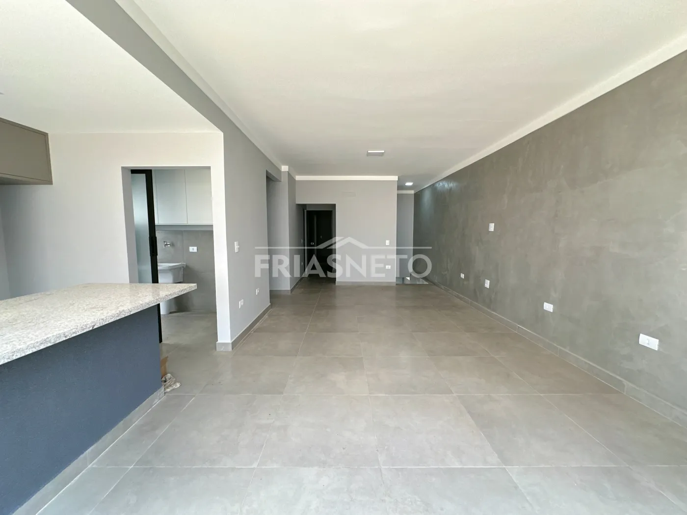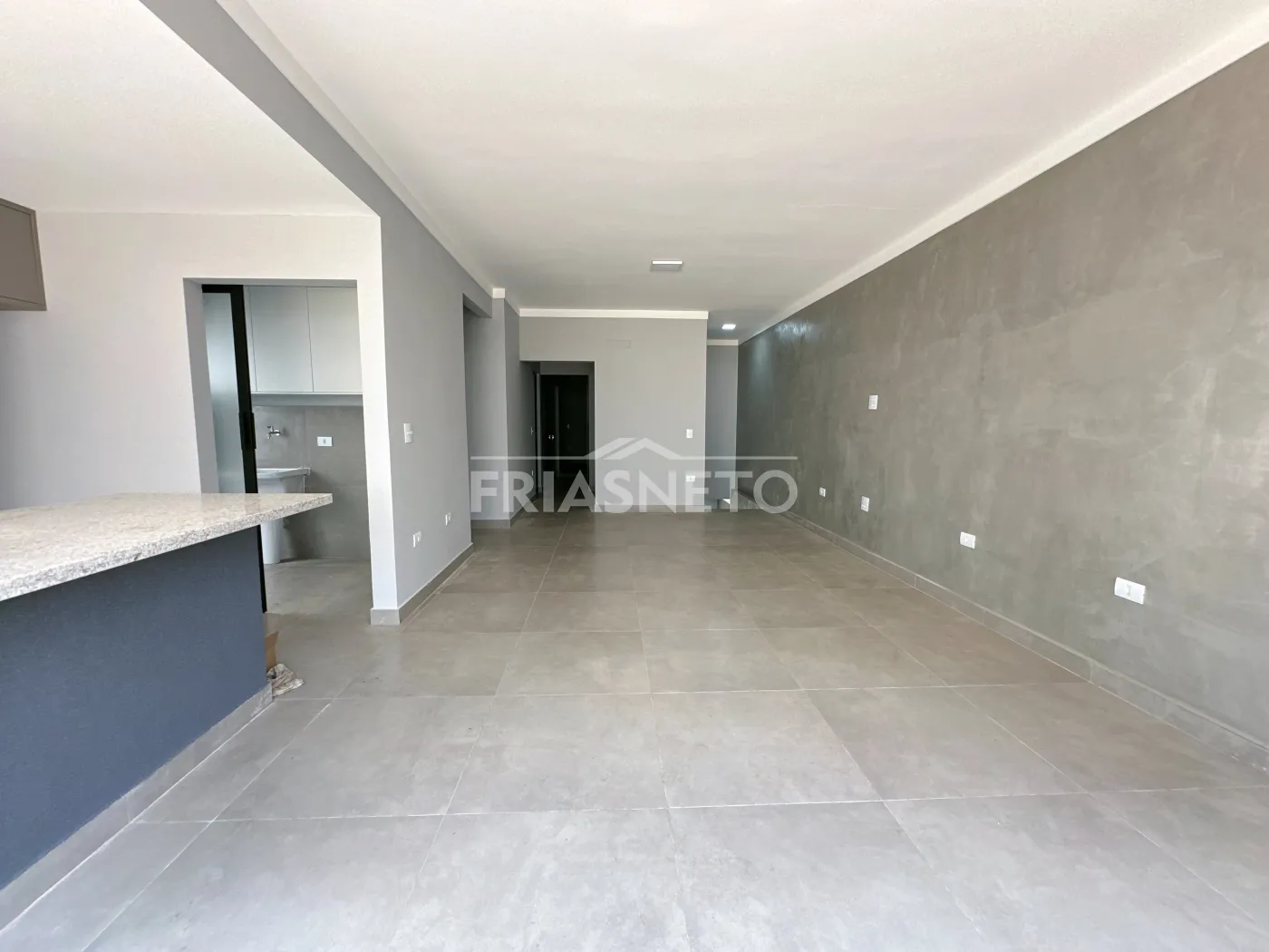 A ampla sala integrada à cozinha americana convida à convivência e à descontração.