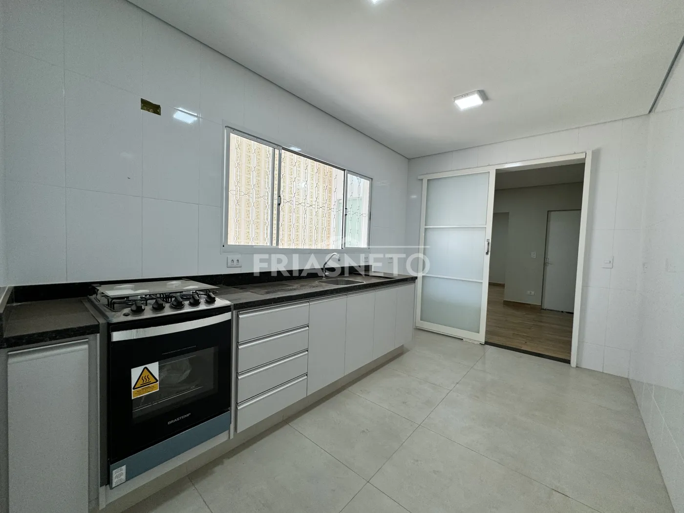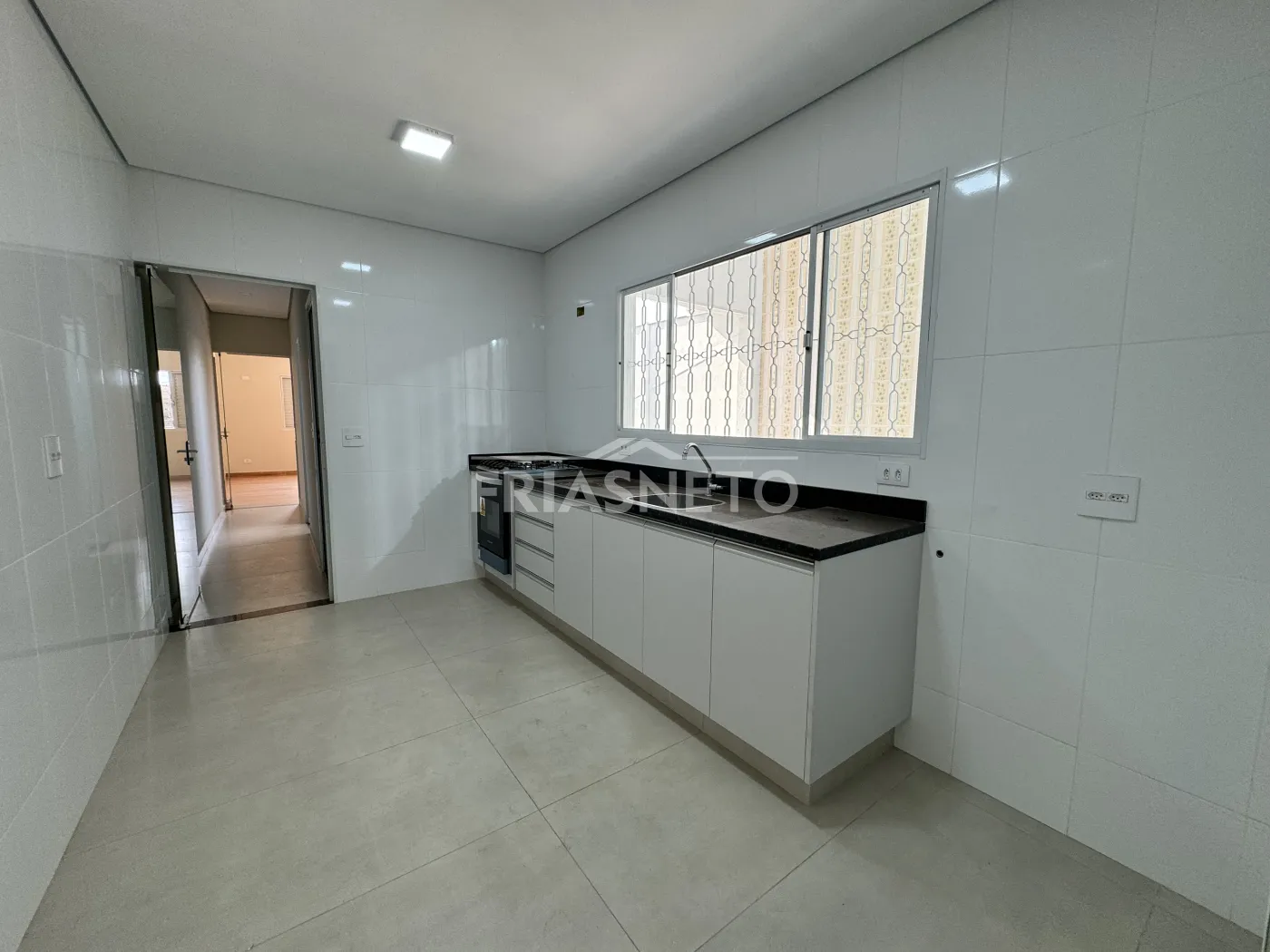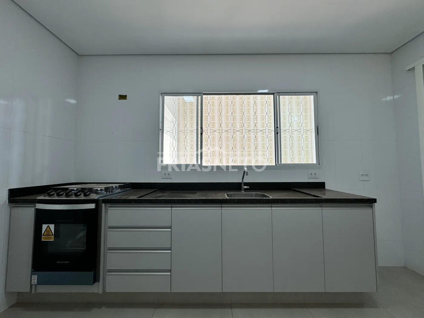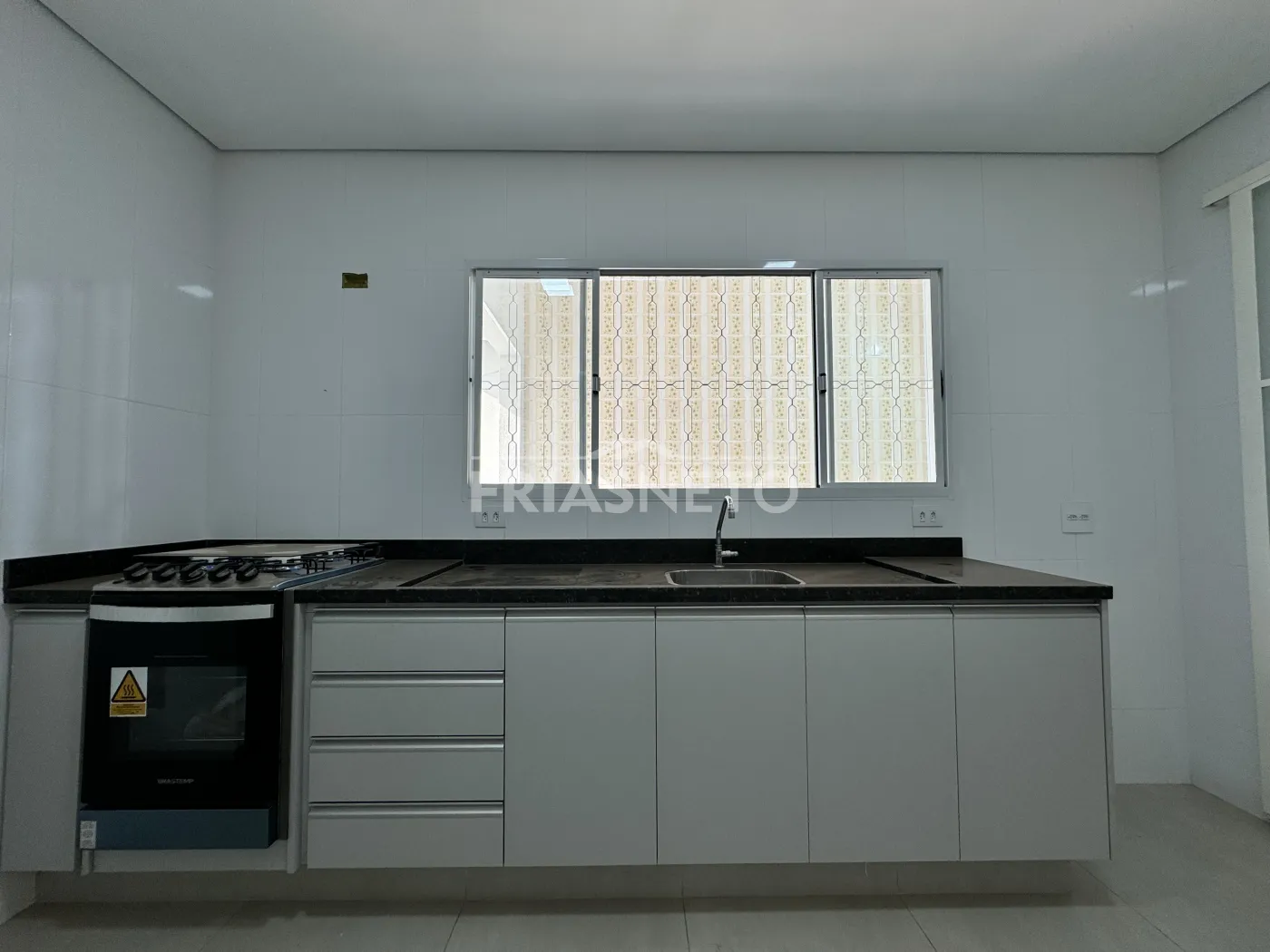 - Cozinha com gabinete e fogão embutido