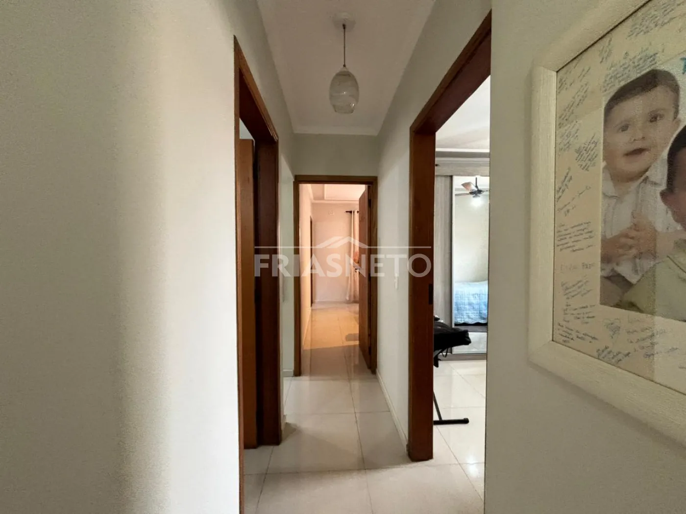 Corredor de distribuição com acesso ao banheiro social e aos dormitórios