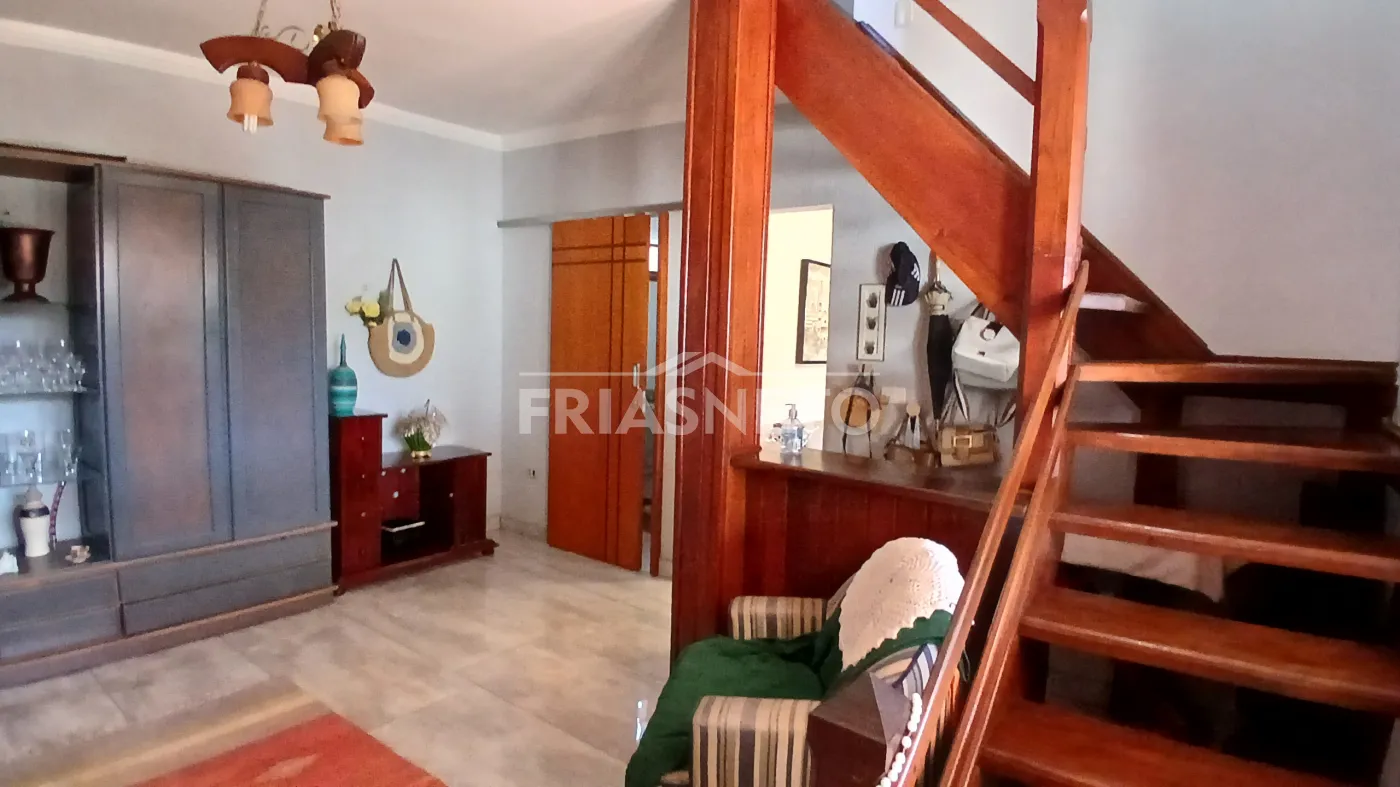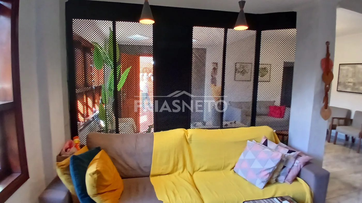 Na área interna, conta com sala de estar e jantar integradas, sala de TV, lavabo, cozinha planejada com armários e área de serviço. No pavimento superior, são 4 dormitórios, sendo 1 suíte, além de 2 banheiros sociais com banheira de hidromassagem.