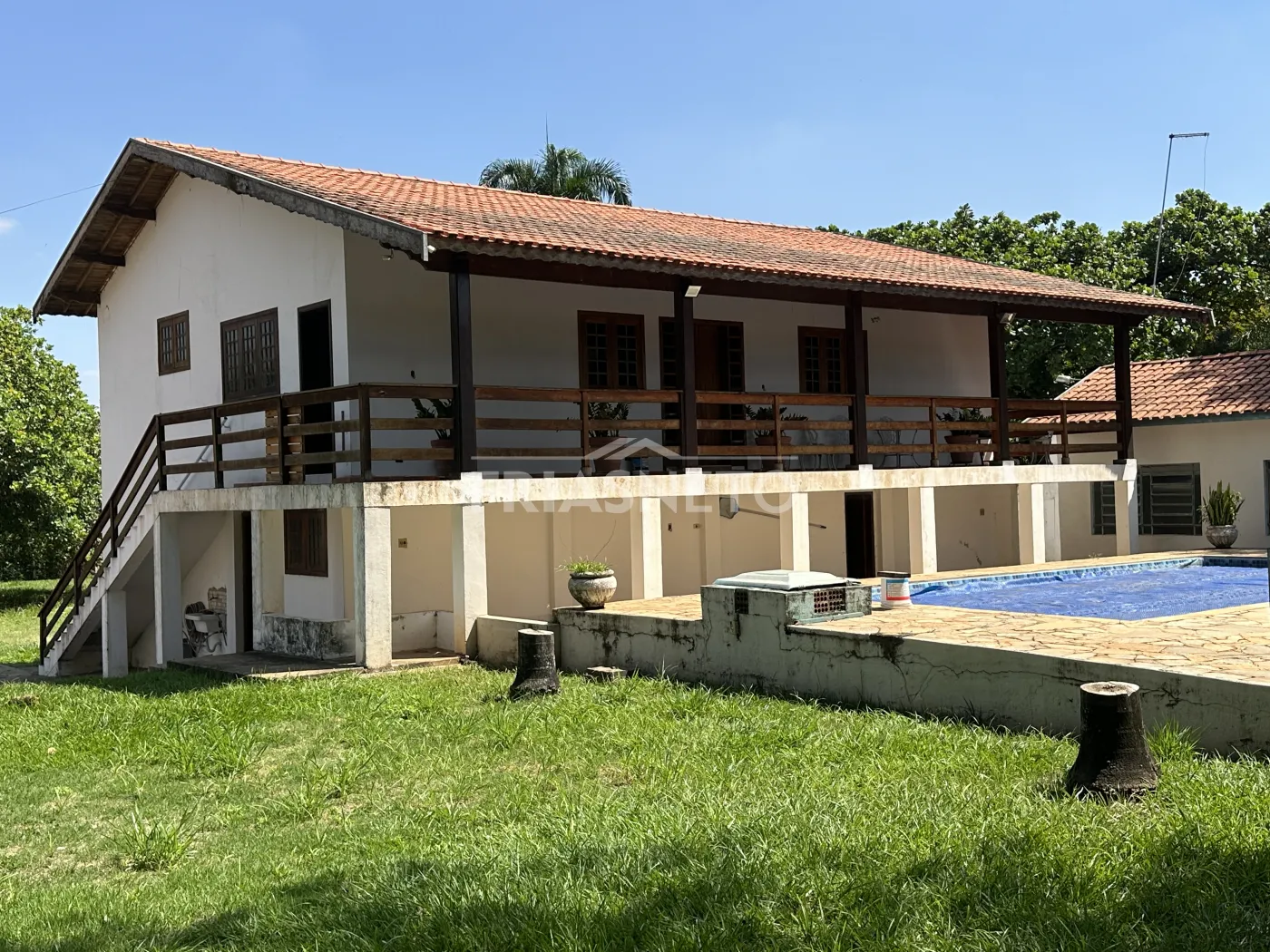 - Possui casa para o caseiro com 2 quartos, 1 casa para barcos com rampa de acesso pelo Rio, sala de jogos, churrasqueira, áreas de convívio, quadra e belo gramado.