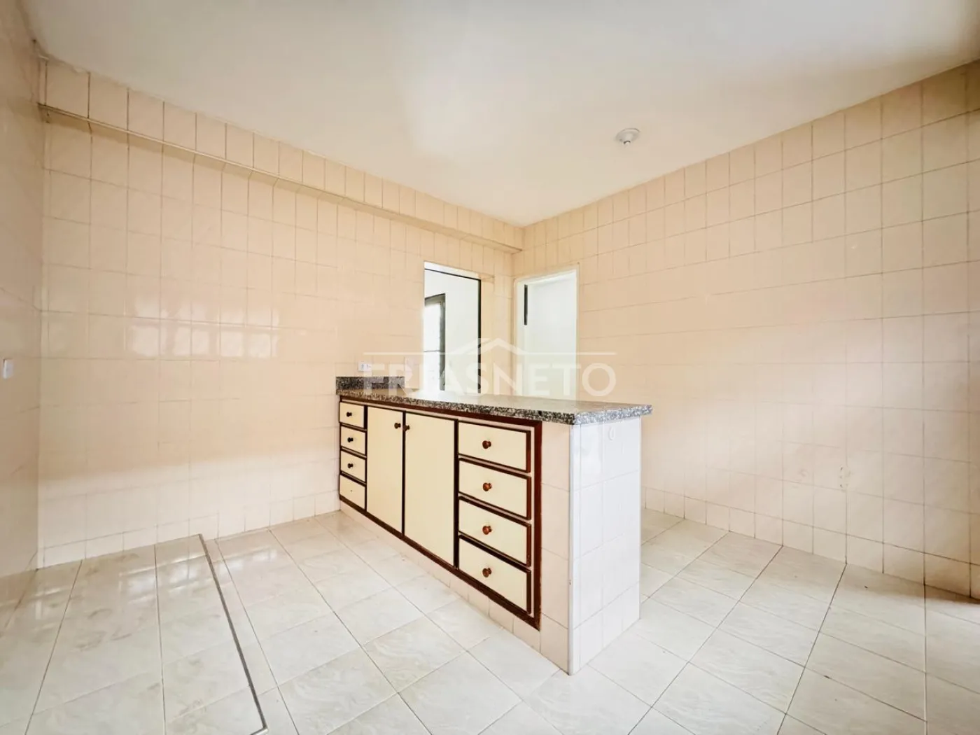 Cozinha e um quintal.