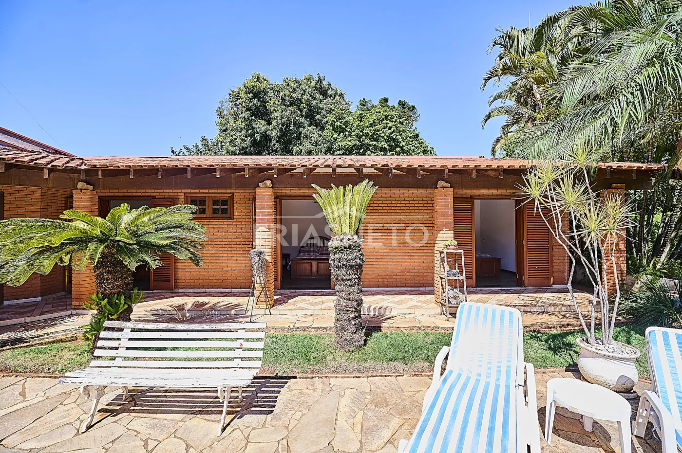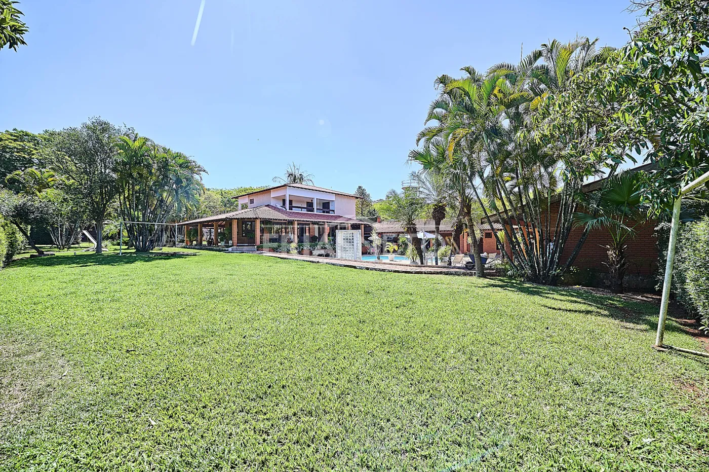 O paisagismo impecável e o amplo gramado criam um ambiente acolhedor e sofisticado, ideal para quem busca qualidade de vida e contato com a natureza.