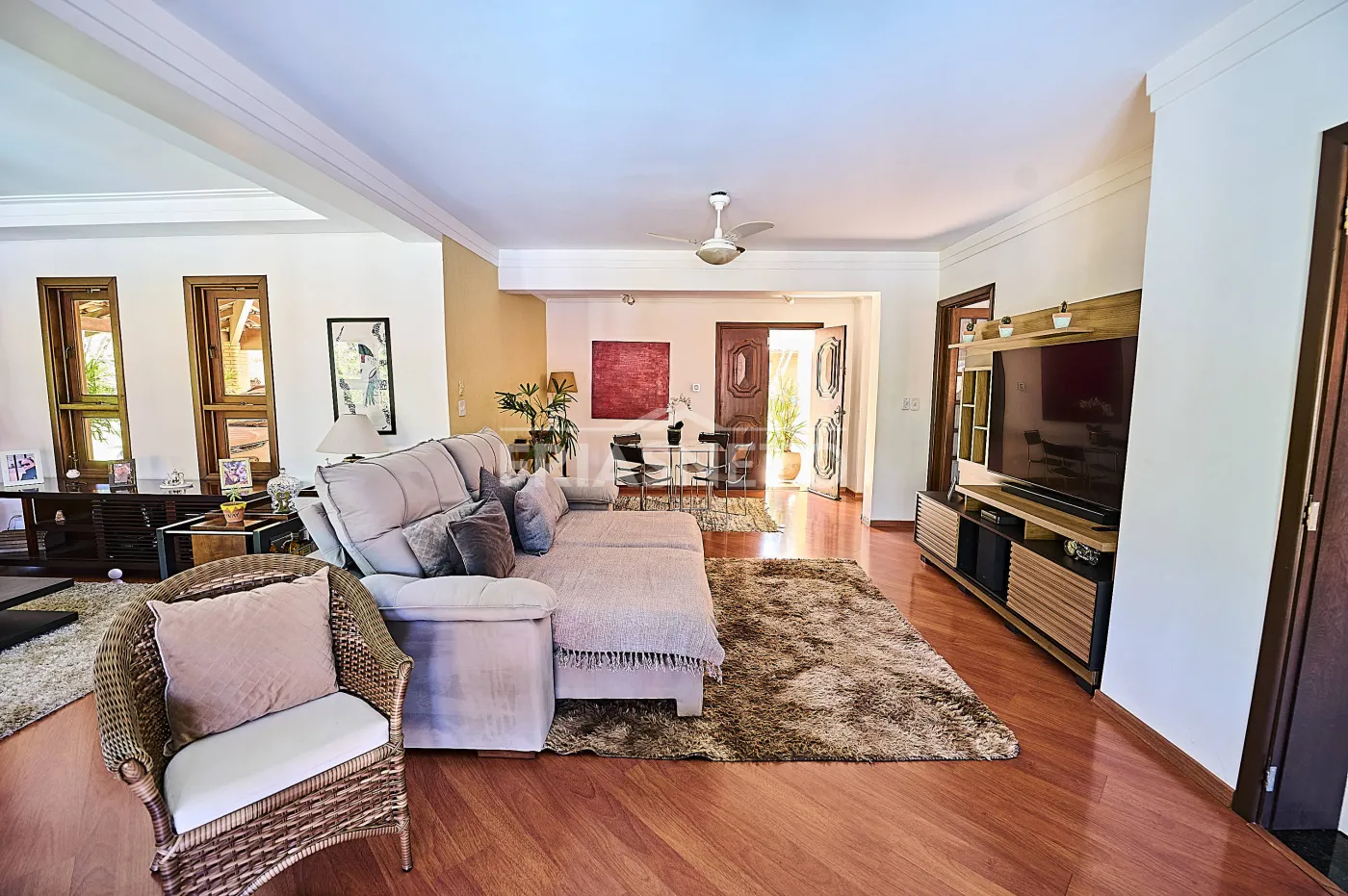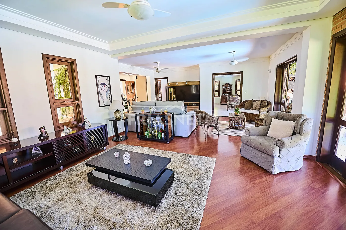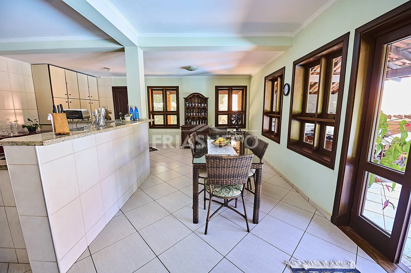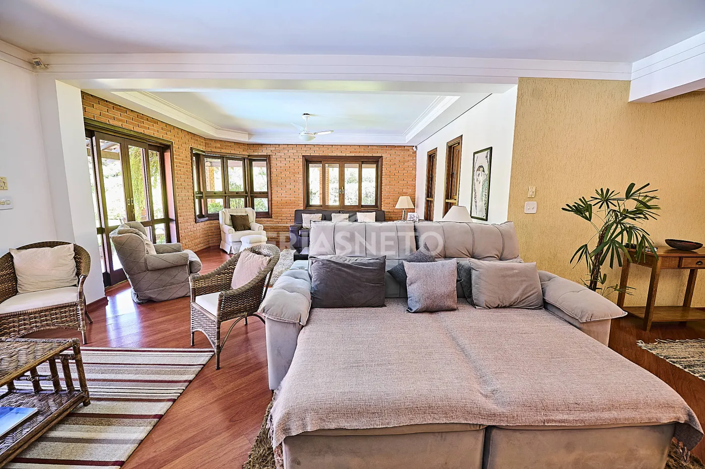 Acomodações para hóspedes contam com 3 dormitórios, sendo 1 suíte ampla e 2 demi-suítes para conforto dos seus convidados e familiares, além de uma sala espaçosa com lareira e pé-direito duplo, integrando charme e elegância;