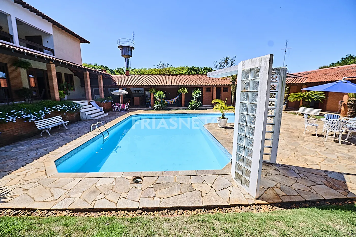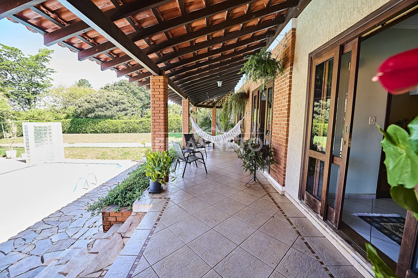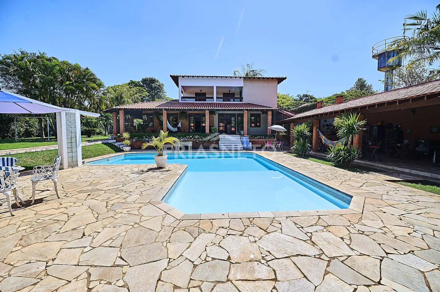 A casa principal, toda avarandada, conta com: