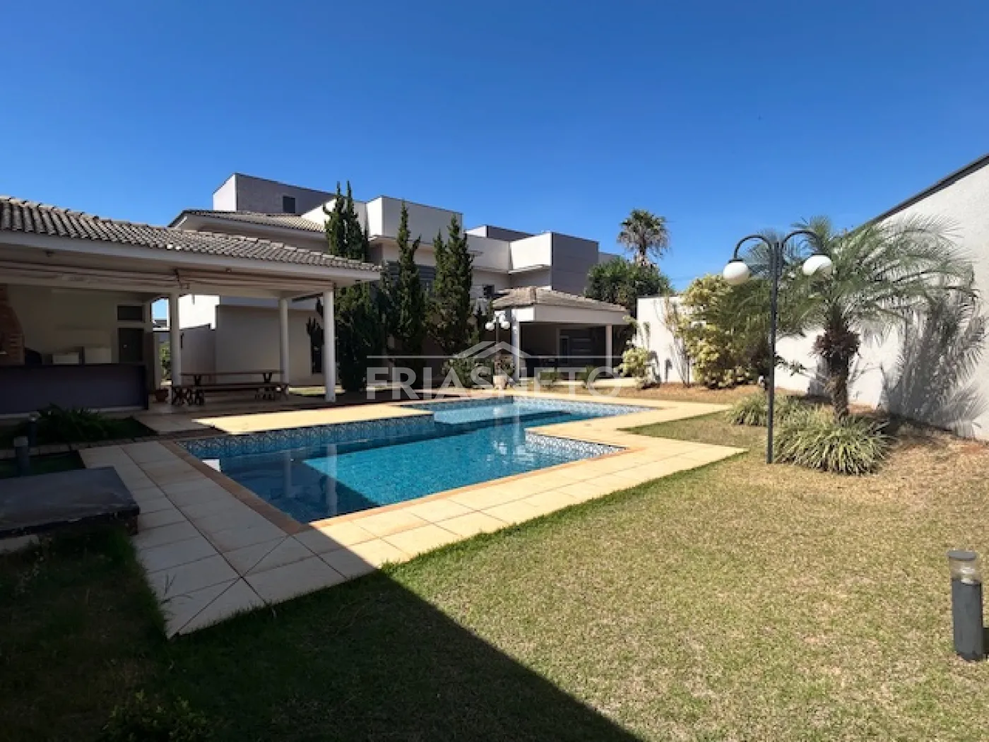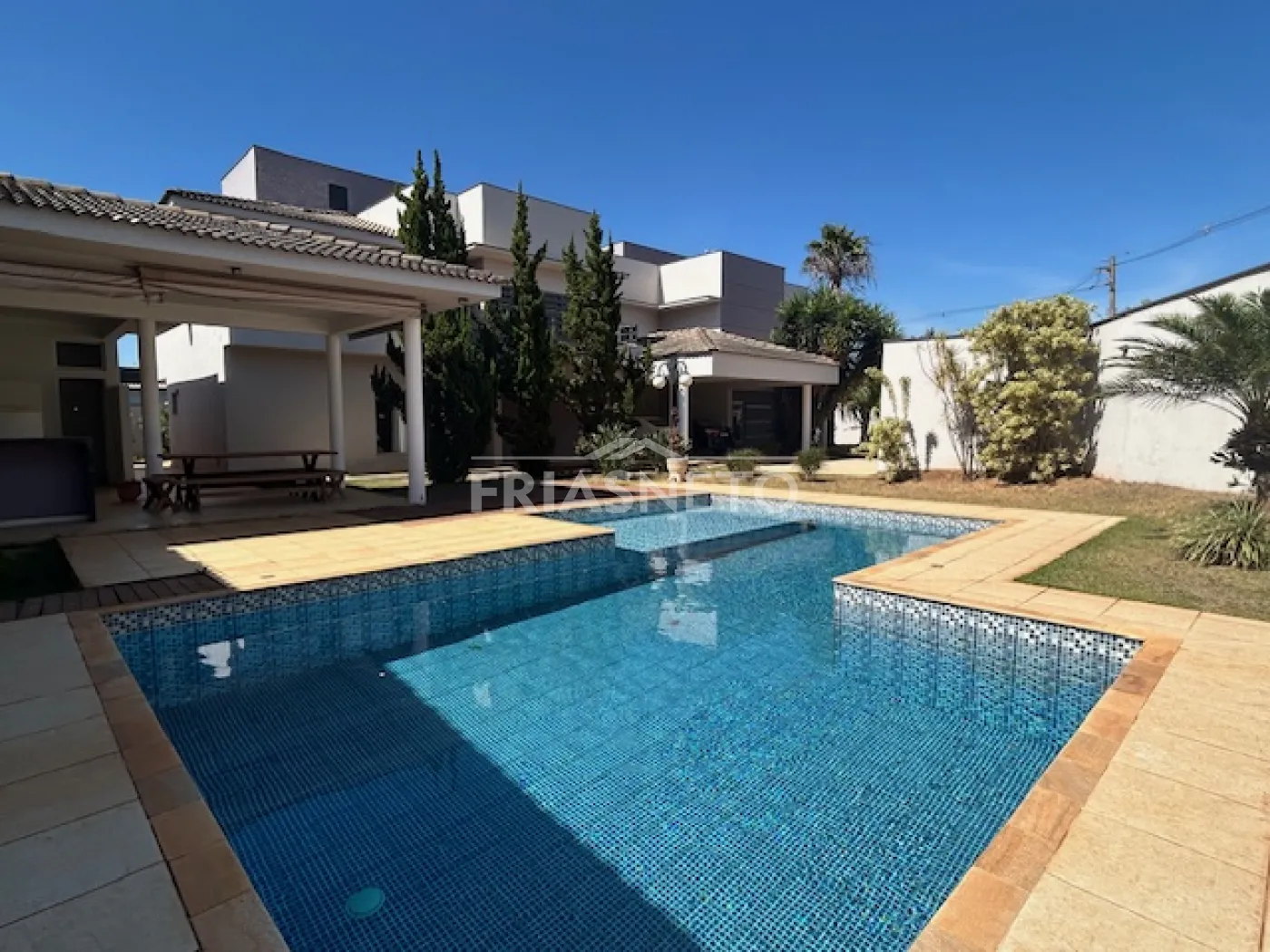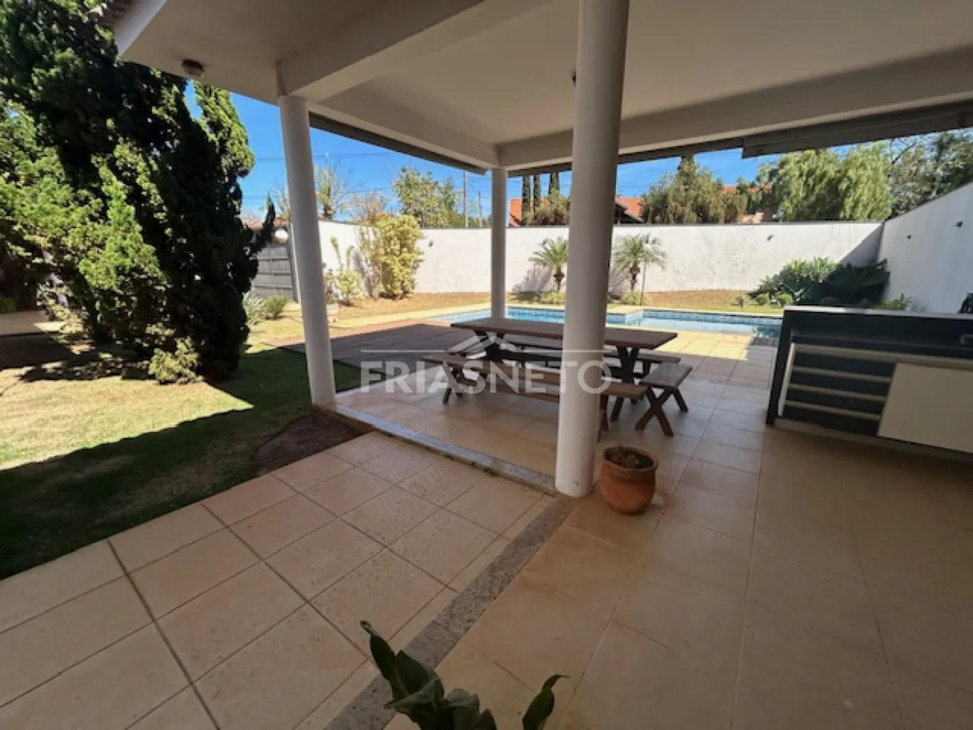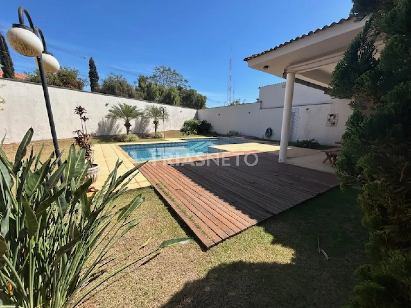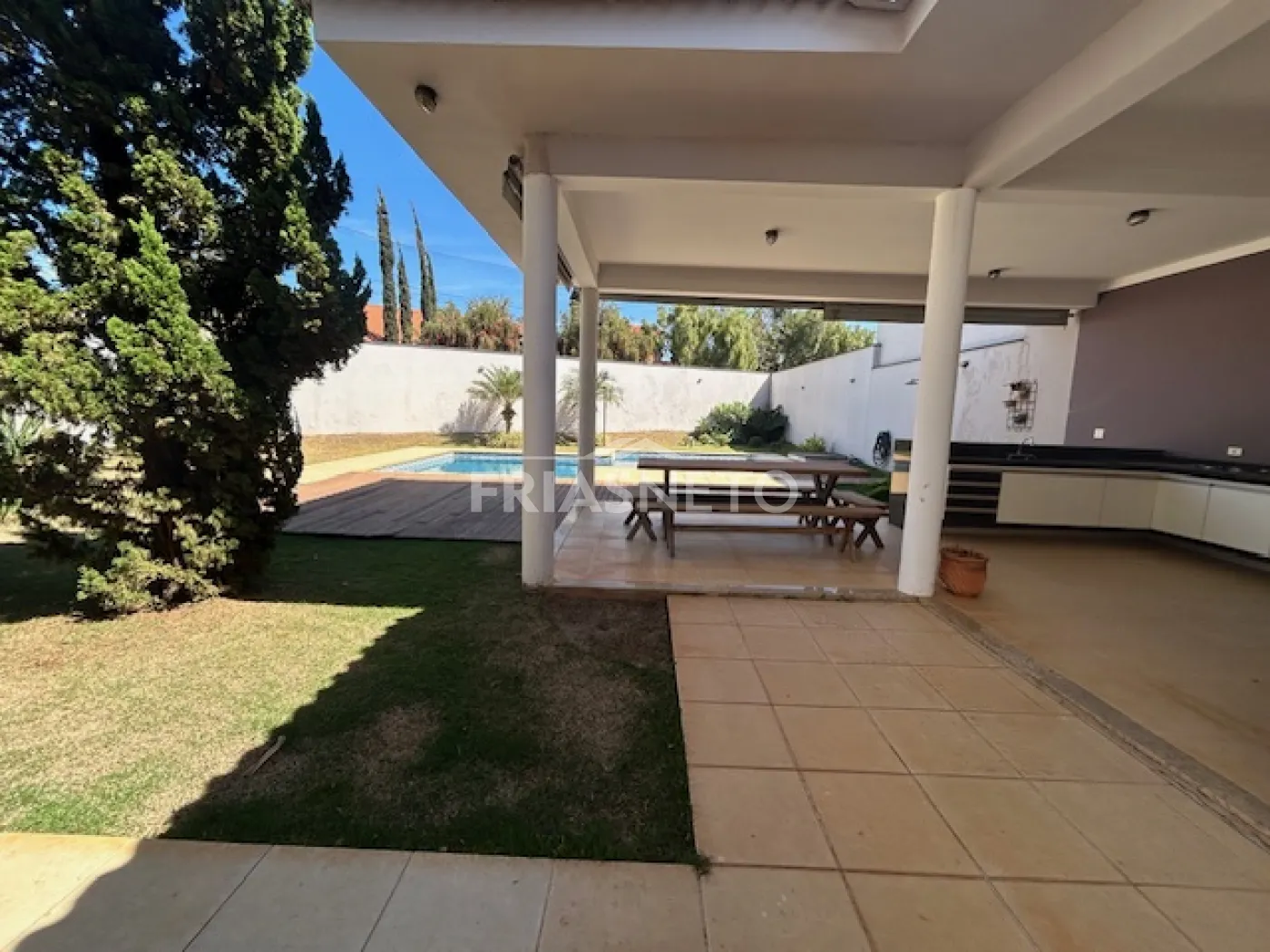 - área externa com porcelanato antiderrapante, cercado por paisagismo, transmitindo aconchego ao imóvel.